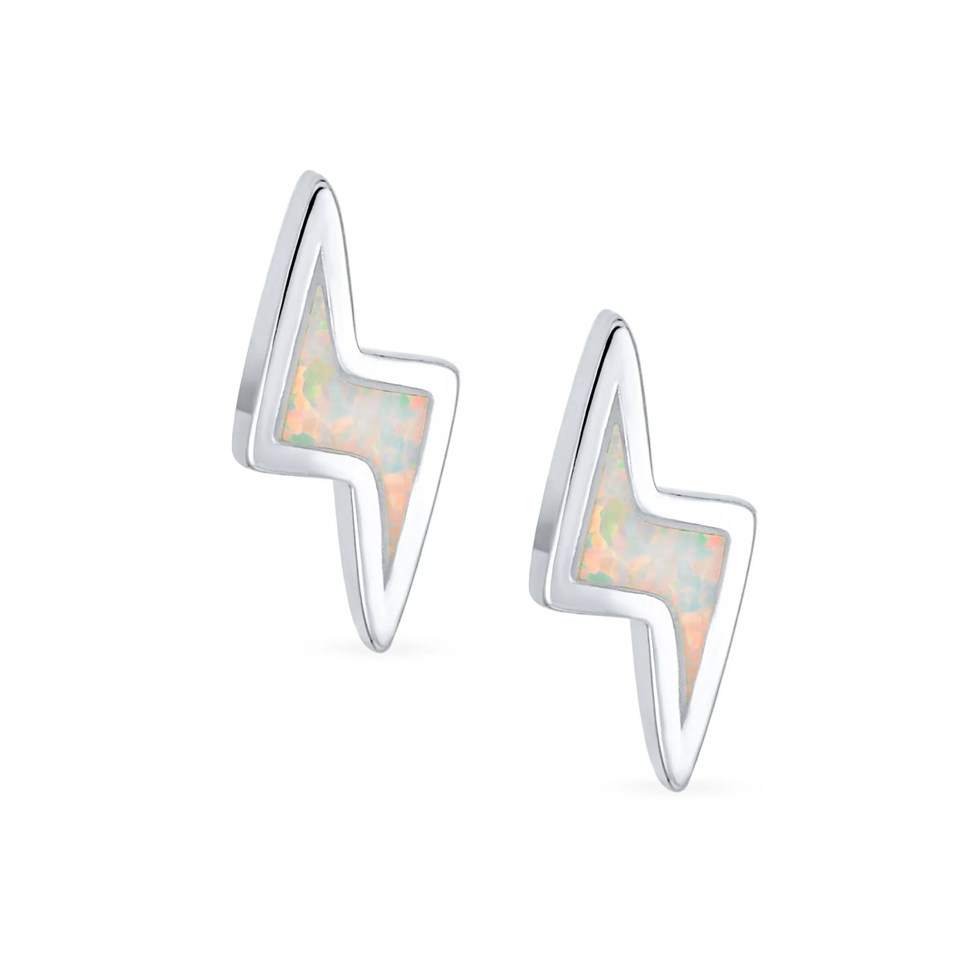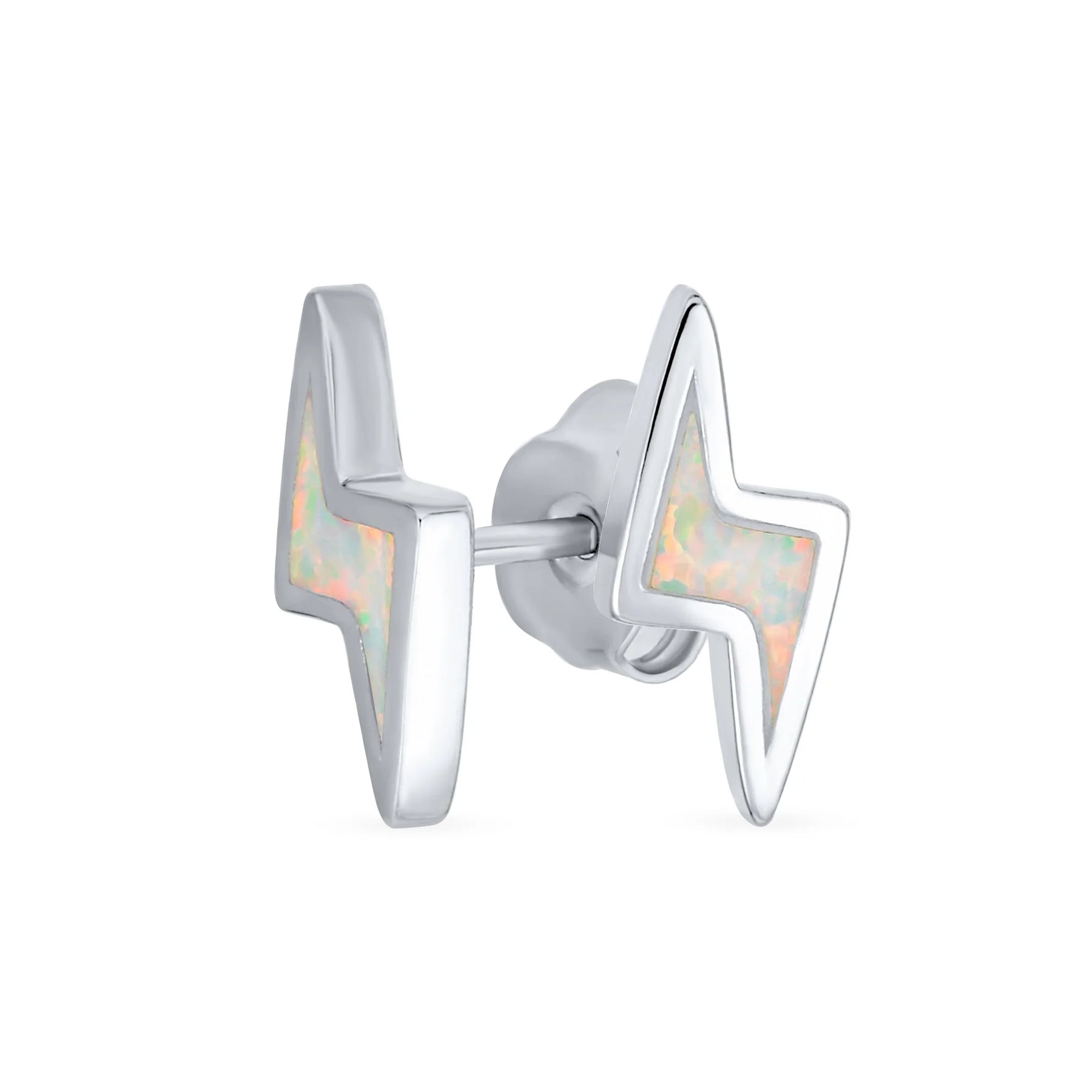 - Add a touch of whimsy to your style with this dainty mini lightning bolt white opal stud earrings, perfect for ceraunophile who love the beauty of thunder and lightning. Lightweight and polished, this striking bolt is ideal for multiple piercings. Electrify your look with this silver accessory, featuring sharp, clean lines that align perfectly with modern, minimalist trends. Its sleek, edgy design complements both casual and formal outfits effortlessly.