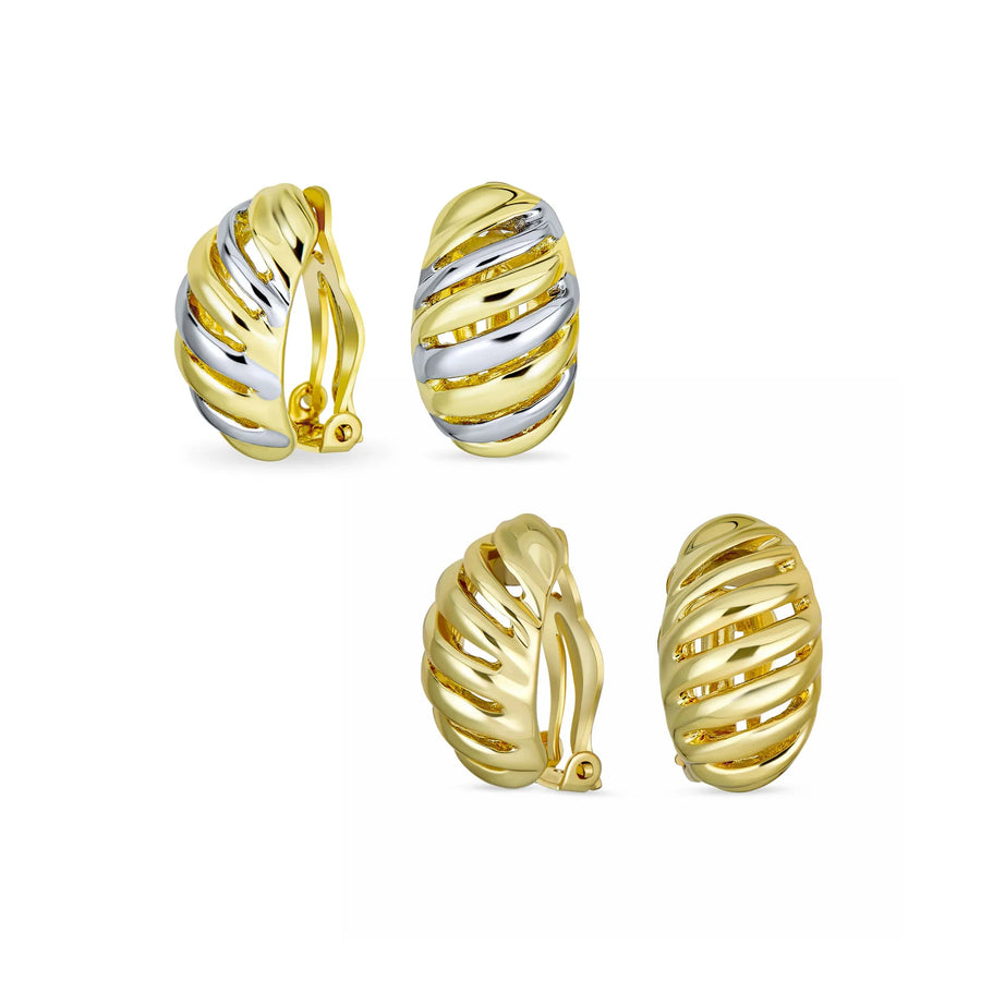 - STUNNING DESIGN - Enhance your style with these eye-catching, two-tone clip-on earrings for non-pierced ears. Featuring a shrimp-style pattern with gleaming gold-plated and rhodium-plated brass, perfect for adding a touch of elegance to your daily ensemble.