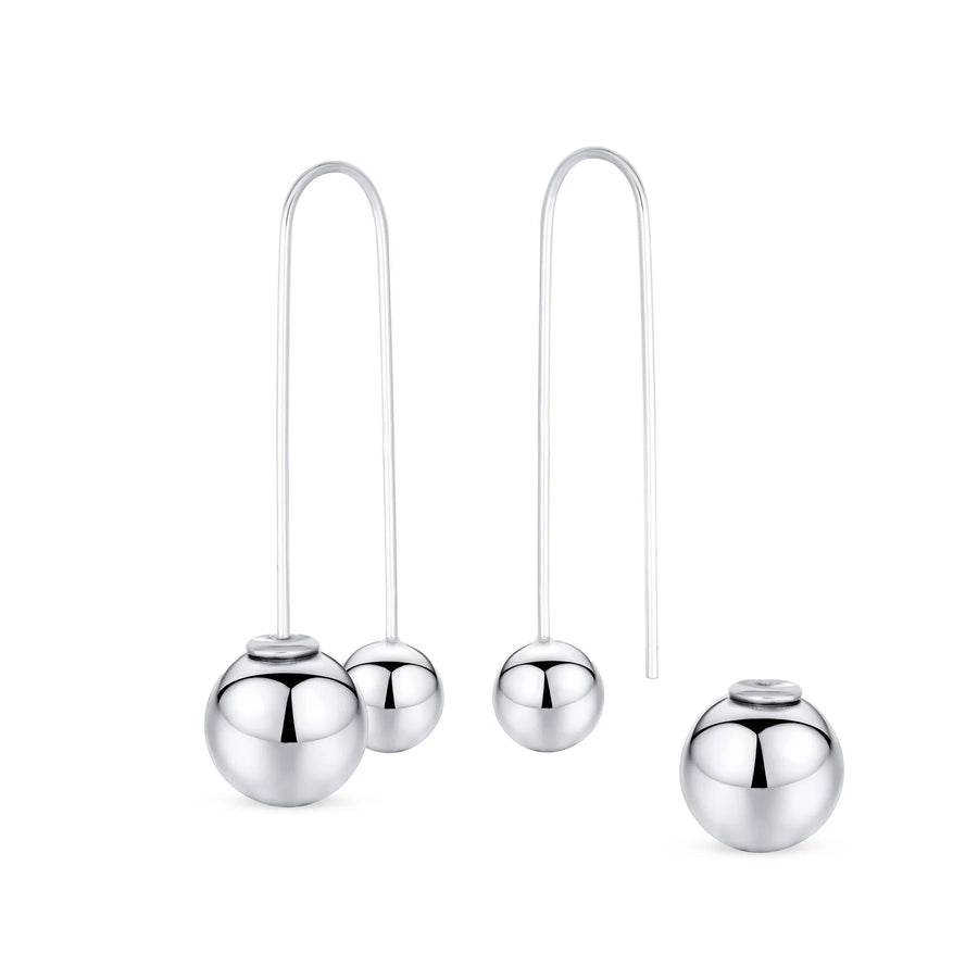 - Enhance your style with these sleek silver drop dangle earrings featuring graduated 2 ball beads of different sizes. The larger ball is removable for easy wear, hanging elegantly from sterling silver ear wire threader. Elevate your look with a touch of modern glamour.