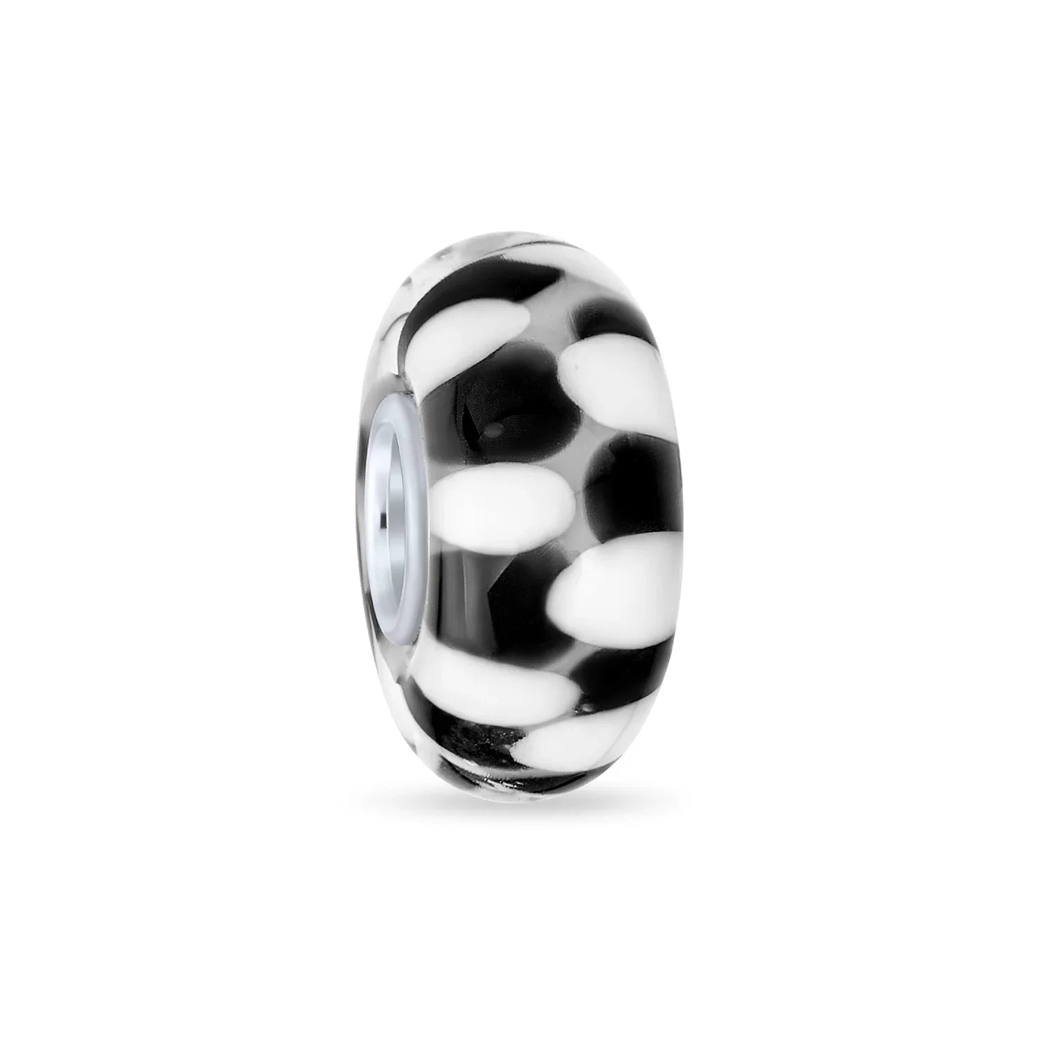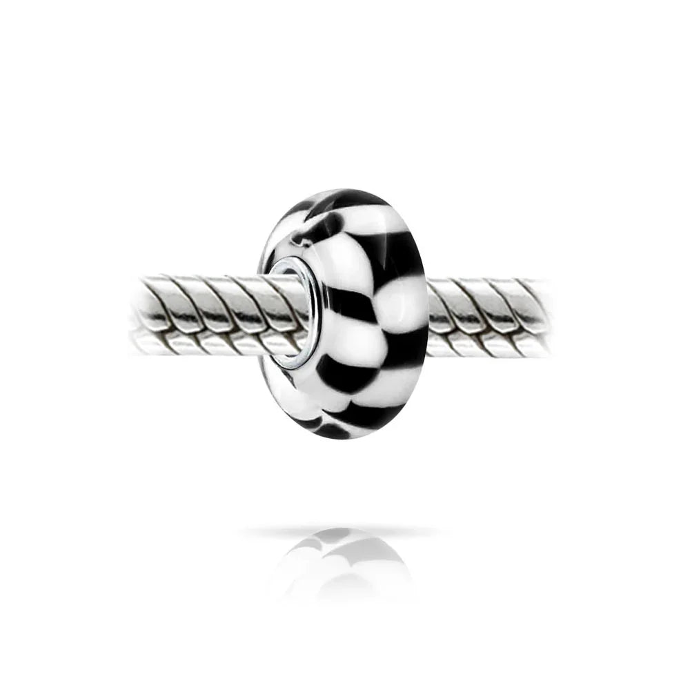 - The race is on for this checker flag bead, perfect for NASCAR and racing fans. This black and white bead resembles a checker flag. Crafted from quality .925 sterling silver and Murano glass, it's a must-have. Add this sterling silver bead to your colorful bracelet. Order your black and white bead today. Bead Core 5mm.