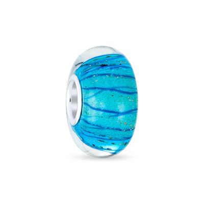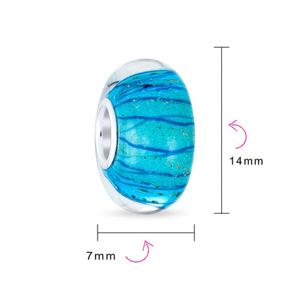 Murano Glass Charm Bead Blue Green Glitter Swirl for European Bracelet