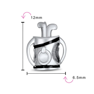 - Enhance your bracelet with the Golf Clubs 925 Sterling Silver Sports Bead. This European charm features a golf bag with 3 clubs. Crafted from .925 Sterling Silver, it measures 12mm x 6.5mm x 9mm. Perfect for golf enthusiasts, it fits seamlessly with your bracelet. Explore various patterns like sports, star, crystal, glass, and birthstone beads. Personalize your jewelry collection today!