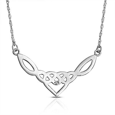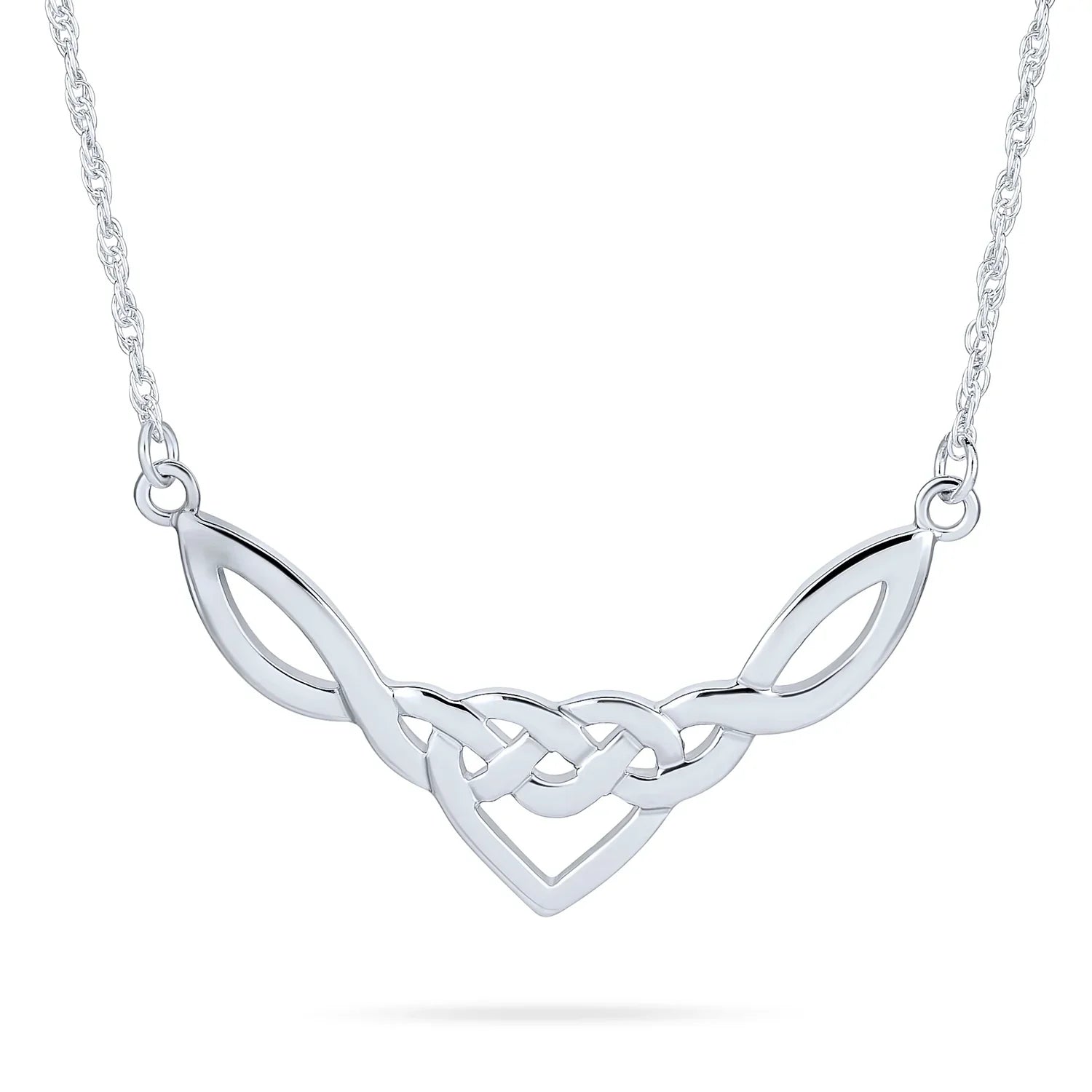 - Fall in love with this Celtic love knot necklace, crafted from solid .925 Sterling Silver. This heart-shaped necklace features a stunning Celtic love knot heart on an 18in rope chain. Secured with a spring ring clasp, it's perfect for St. Patrick's Day, Valentine's Day, or Mother's Day. The striking design and classic style make it easy to pair with jeans or a little black dress.