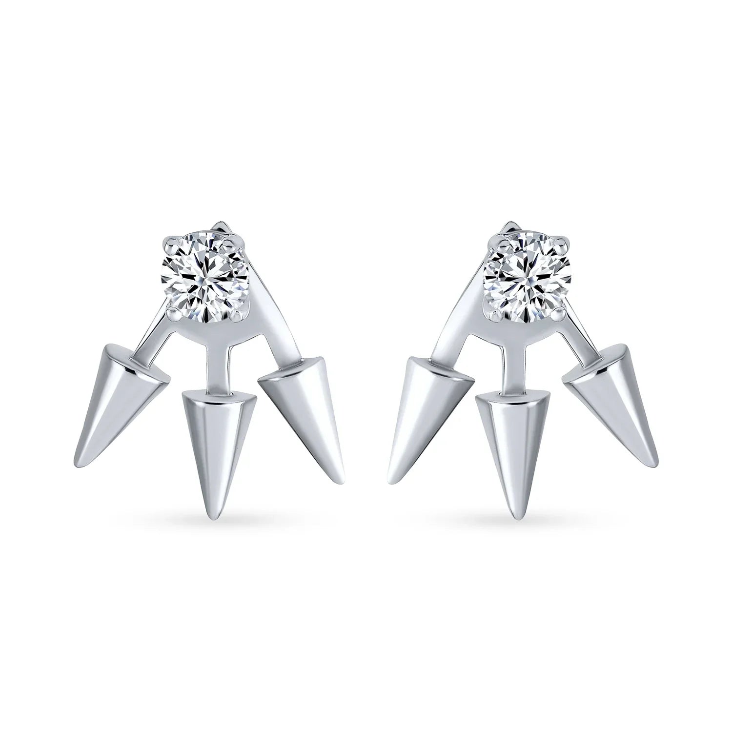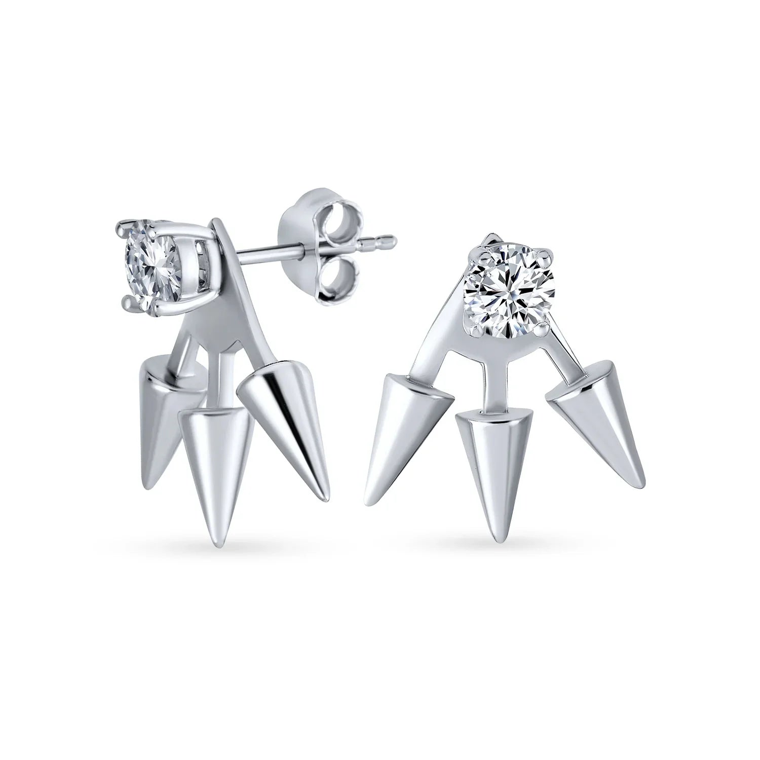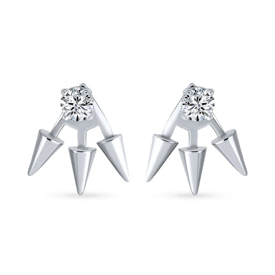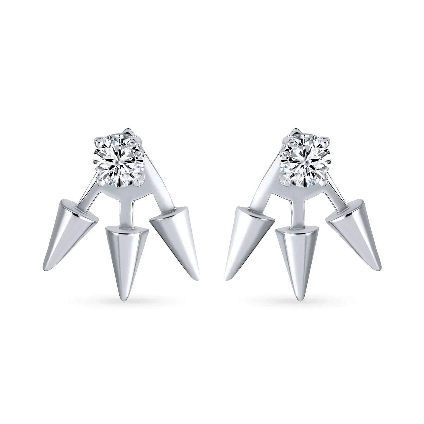 - STRIKING STYLE - Add dynamic edge with a dash of sparkle to your style with these eye-catching rhodium plated sterling silver, ear jacket earrings. A radiant cz stud is arrestingly enhanced by a detachable jacket with bold, triple spike design.