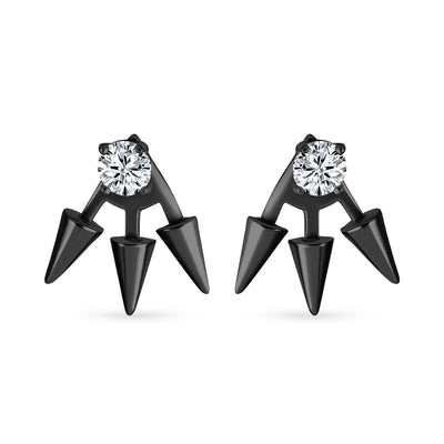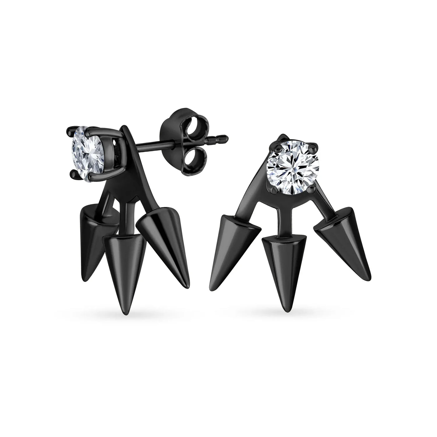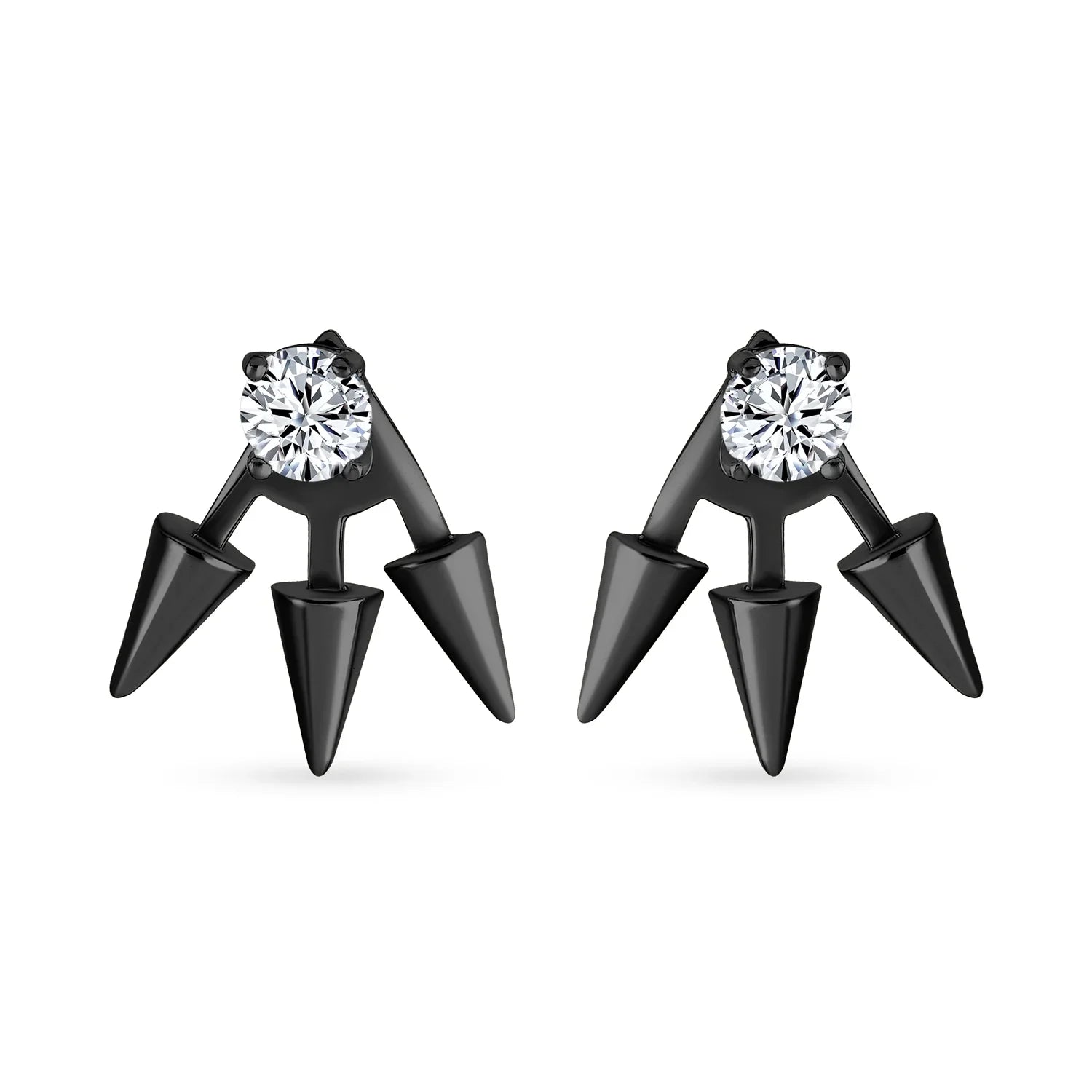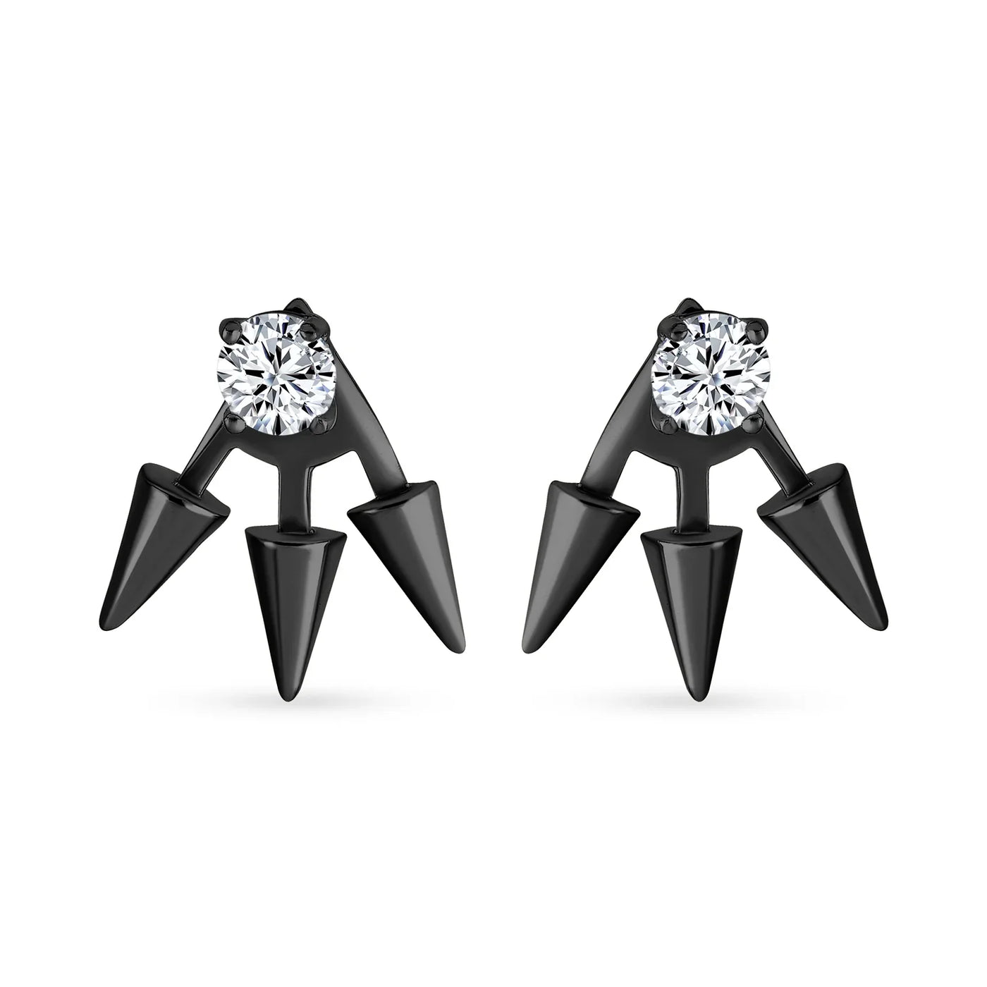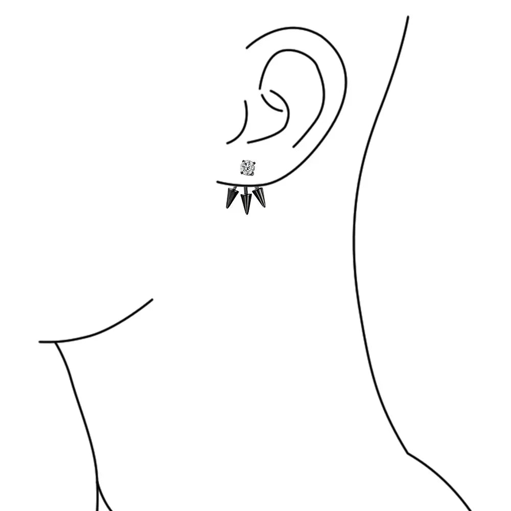 - STRIKING STYLE - Add dynamic edge with a dash of sparkle to your style with these eye-catching rhodium plated sterling silver, ear jacket earrings. A radiant cz stud is arrestingly enhanced by a detachable jacket with bold, triple spike design.