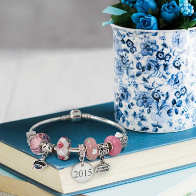 - Congratulate a recent Graduate in your life with this beautifully designed .925 silver charm bangle bracelet. Featuring an array of graduation themed beads with a dangle graduation cap, dangle "Honor Student" charm and center dangle circle charm.