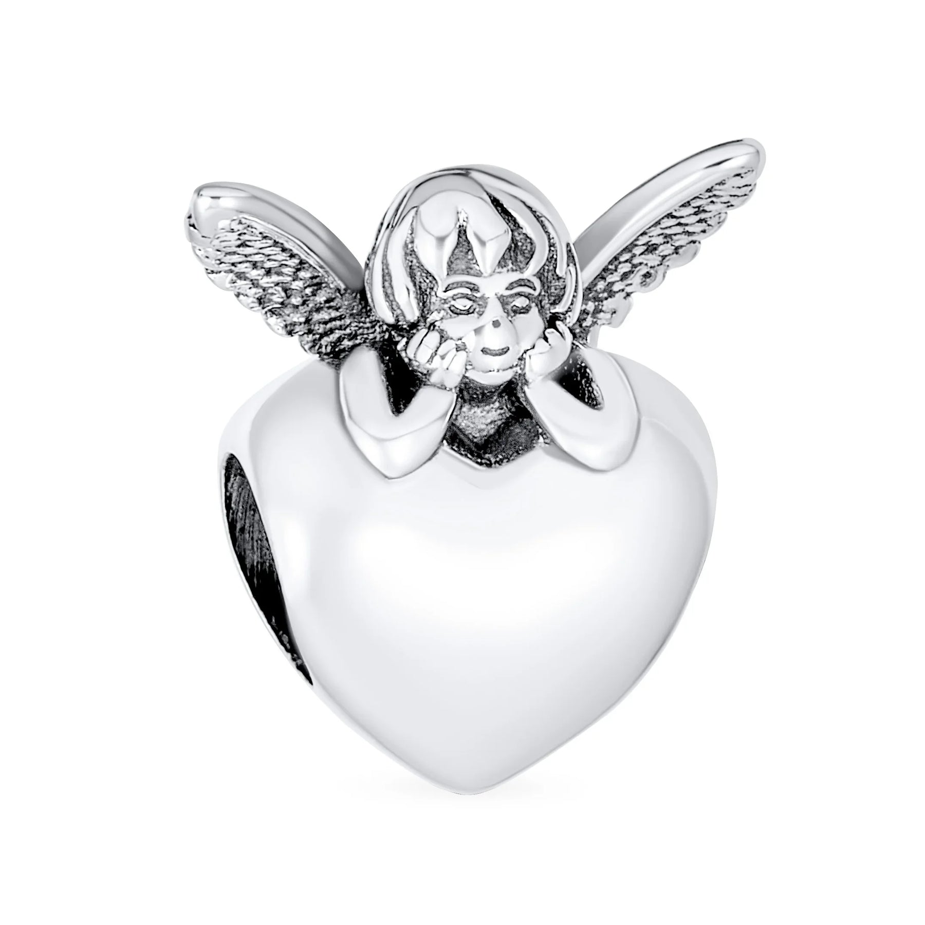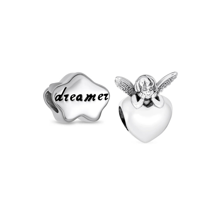 - This adorable sterling silver charms features a little angel leaning on a heart and a stunning Dreamer Cloud, sure to make you smile. With raised arms and a big smile, it warms your heart. Perfect for vacations, retirees, or new ventures. This .925 sterling silver charm brightens any bracelet. Ideal gift for the special angel in your life. Explore our wide range of patterns: crystal, glass, birth month colors, hearts, friends, enamel, and animal beads. Find the perfect charm and more!