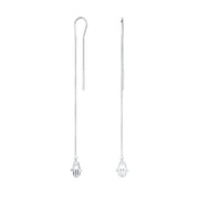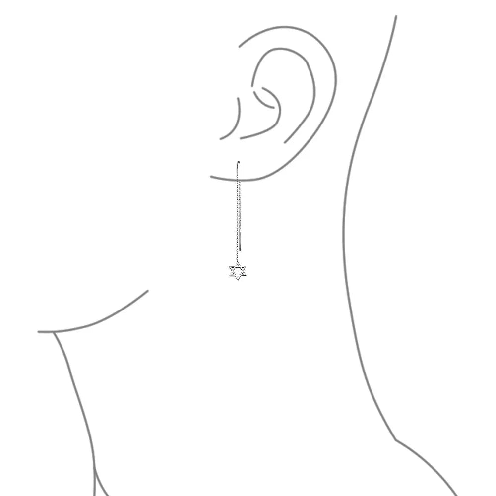 • These modern .925 silver ear threader earrings feature a captivating Hamsa Hand of God motif, elegantly dangling from a long chain, offering a stylish expression of faith. Perfect for a Bat Mitzvah gift.