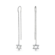 Amulet Hamsa Hand Dangle Earrings Spiritual Threader Sterling Silver Chain - Bling Jewelry