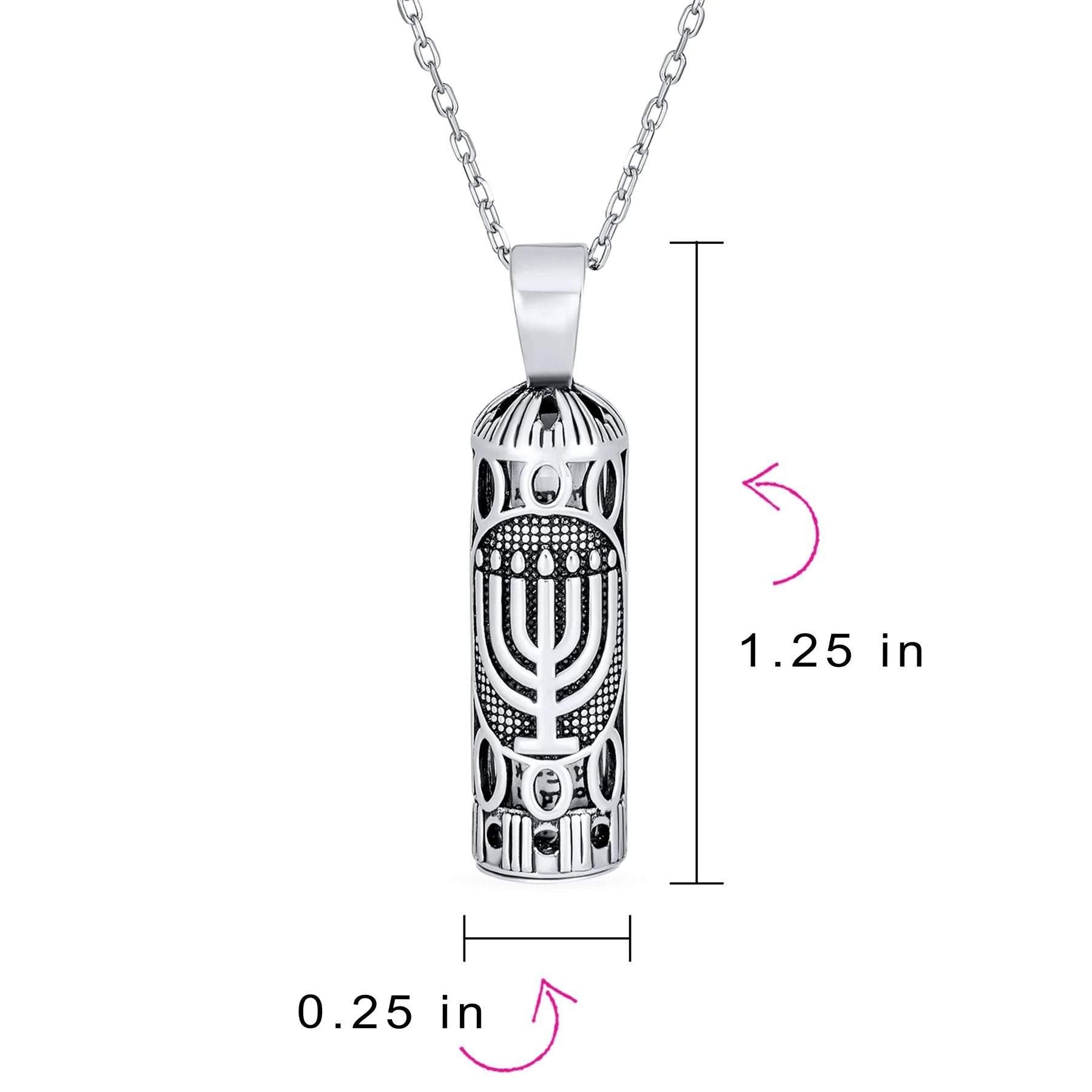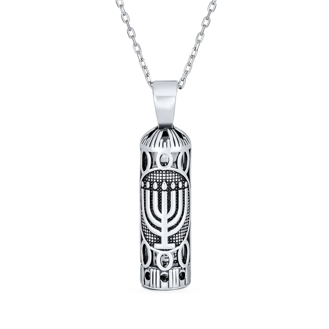 - Celebrate Hanukkah with this exquisite Mezuzah pendant. This silver Star of David pendant symbolizes faith and tradition. Perfect for holiday gifts, bat mitzvahs, or bar mitzvahs. Crafted from .925 Sterling Silver, it embodies classic religious jewelry. Order your Mezuzah necklace today. Chain included.