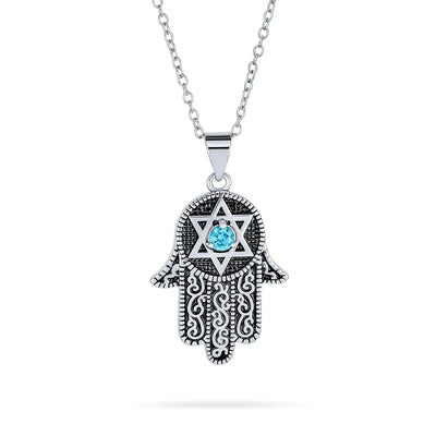 - This Star of David Hamsa Hand pendant is a stunning piece of jewelry. The intricate detailing is utterly jaw-dropping. It captures a Middle Eastern sensibility. The Hamsa hand is a good luck talisman in some cultures. This pendant features a glistening multifaceted CZ stone. The Cubic Zirconia lies in the center of the Star of David. Suitable for everyday wear, you'll never want to take it off. Perfect gift for religious milestones like Bat Mitzvah and Hanukkah.