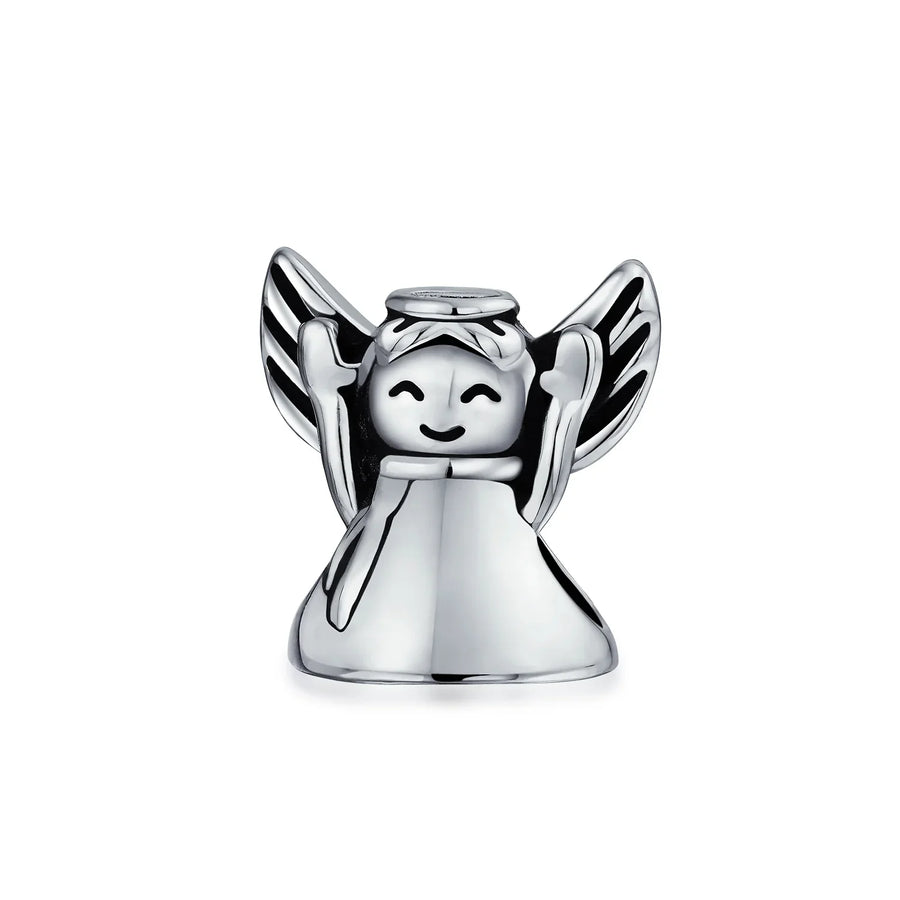 - This adorable sterling silver charm features a happy angel with raised arms and a big smile. Perfect for charm and bead bracelets. Ideal gift for the special angel in your life.