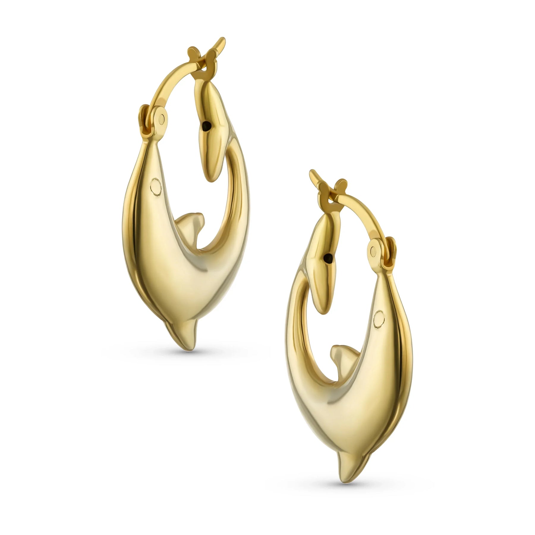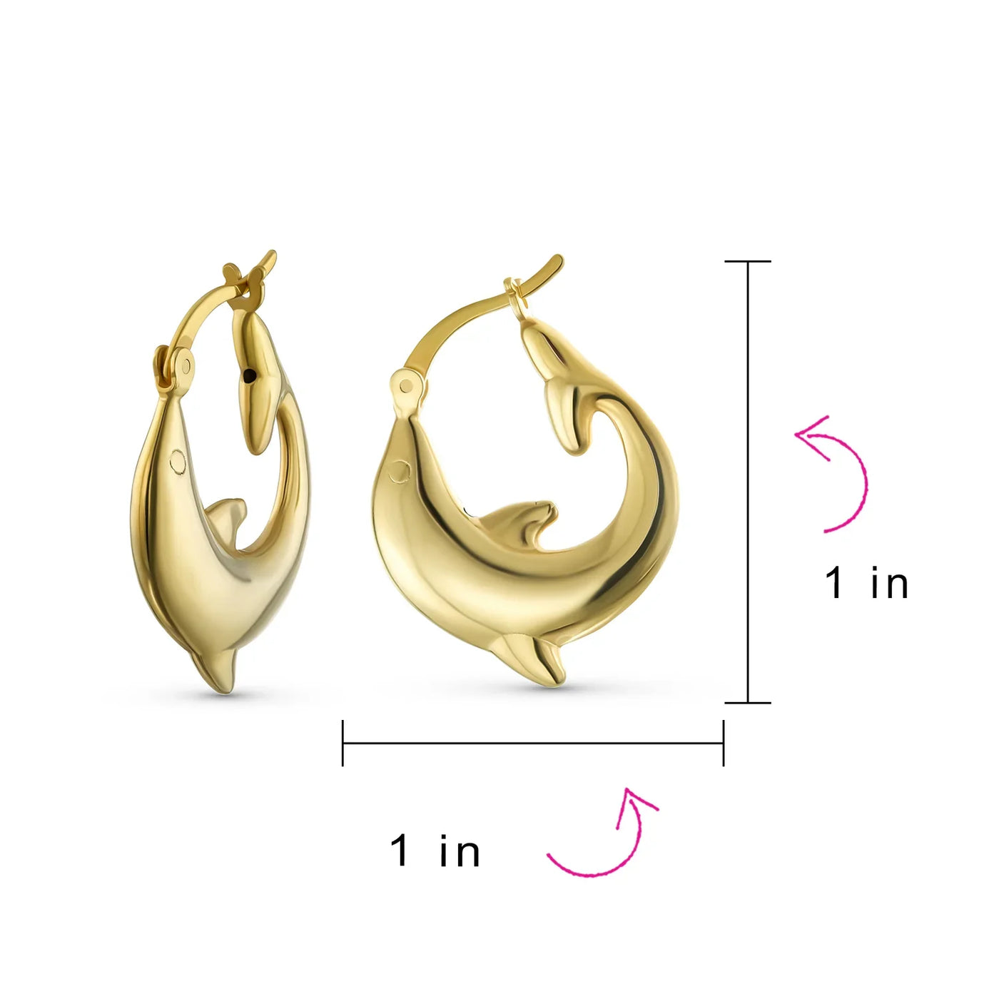 Hawaiian Nautical Ocean Marine Life Dolphin Hoop Earrings