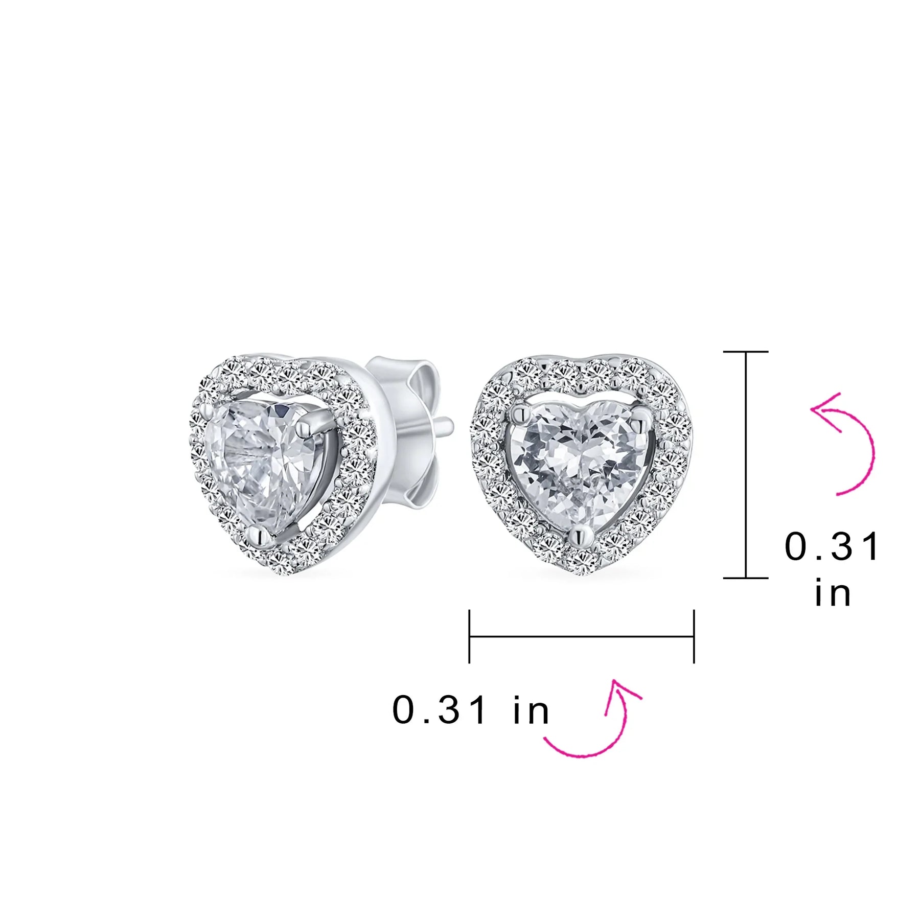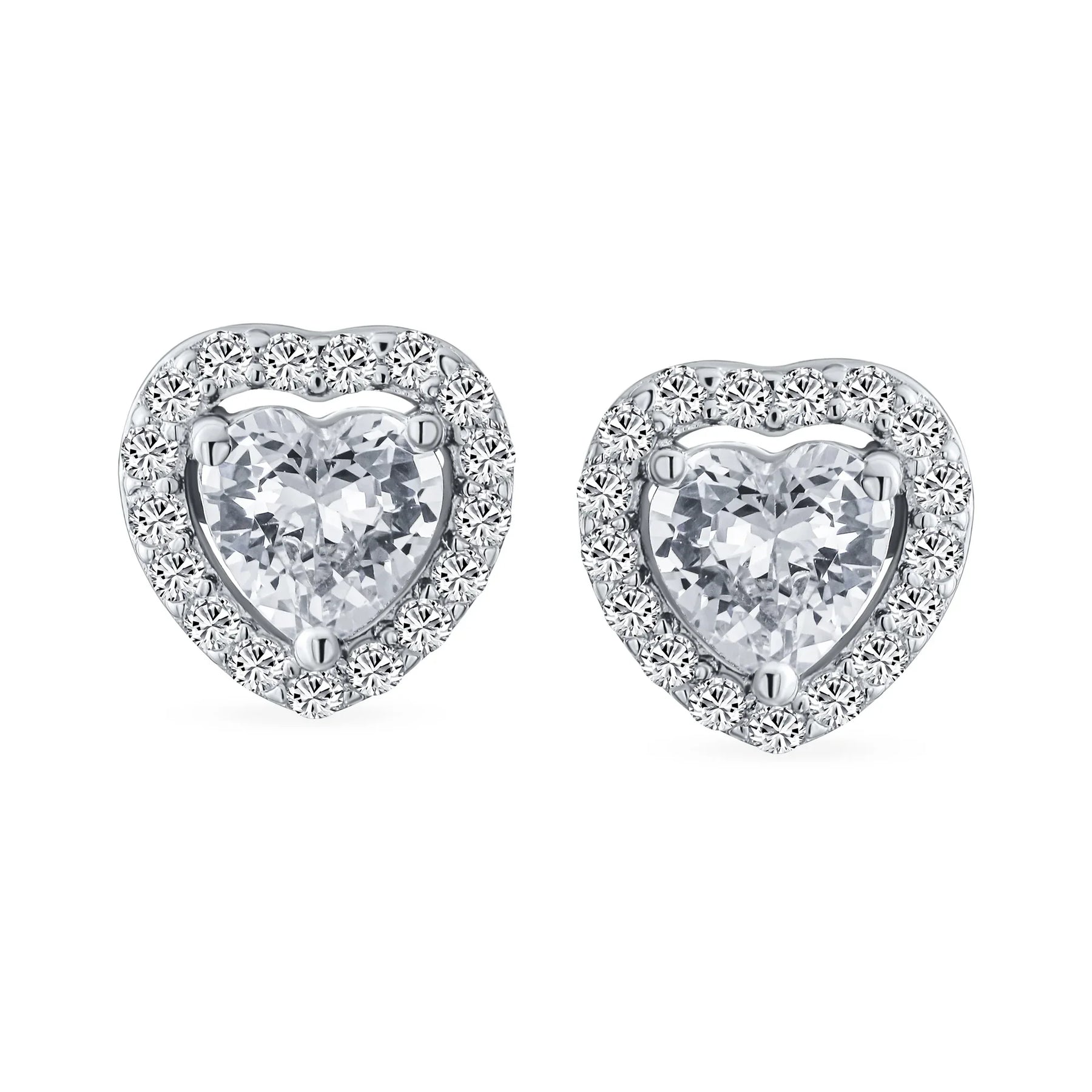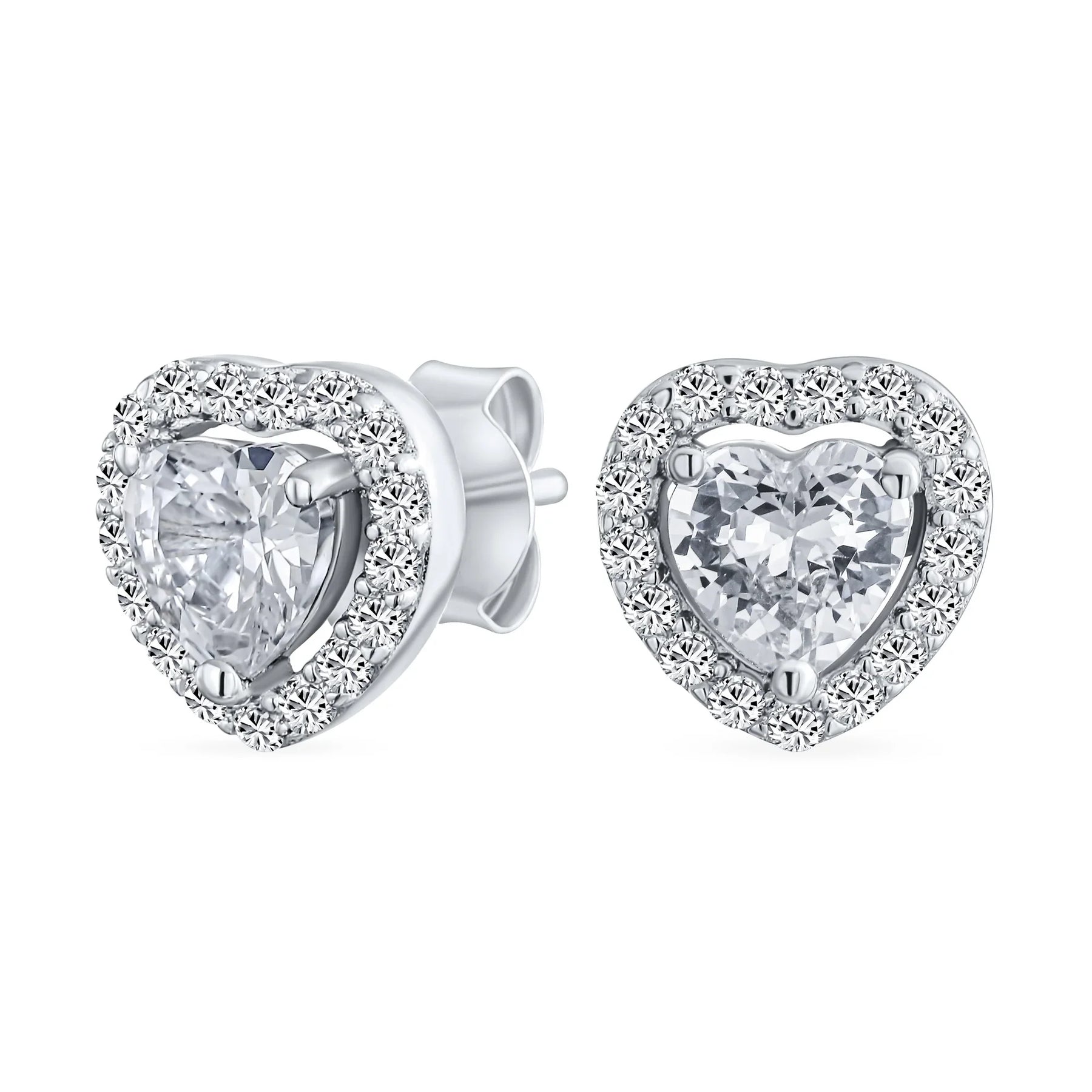 - Sparkle and shine with these stunning cubic zirconia heart earrings. A brilliant CZ heart rests inside a halo of dainty CZs. Perfect for adding shine to any outfit. Secure friction back fasteners ensure they stay on. Show your love with this elegant pair. Ideal for Valentine's Day jewelry gifts. Crafted with sterling silver and CZ stones. Easily match with any outfit for a statement of elegance and femininity.