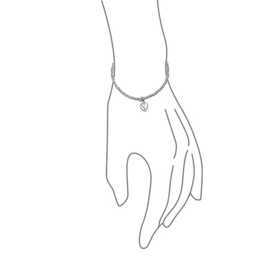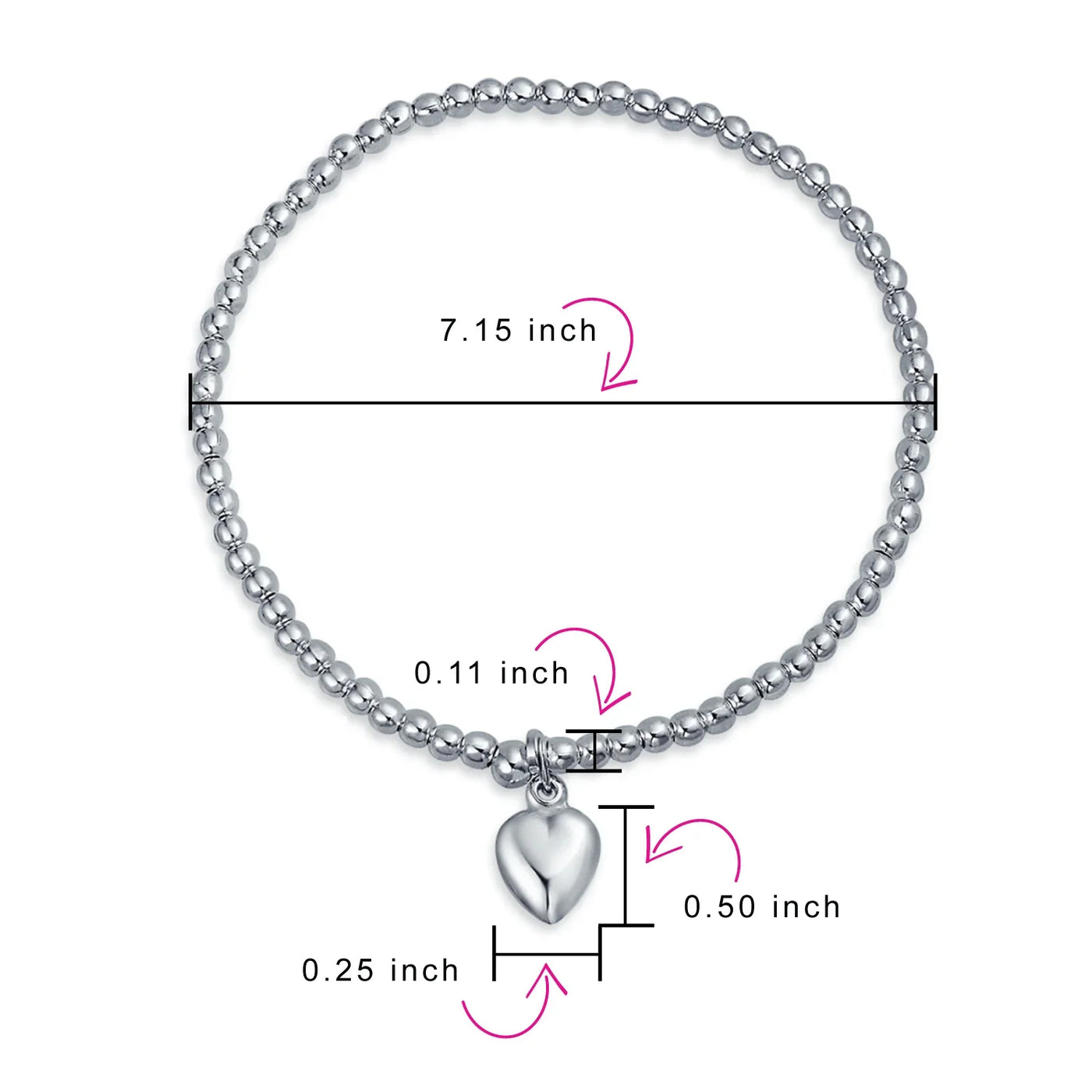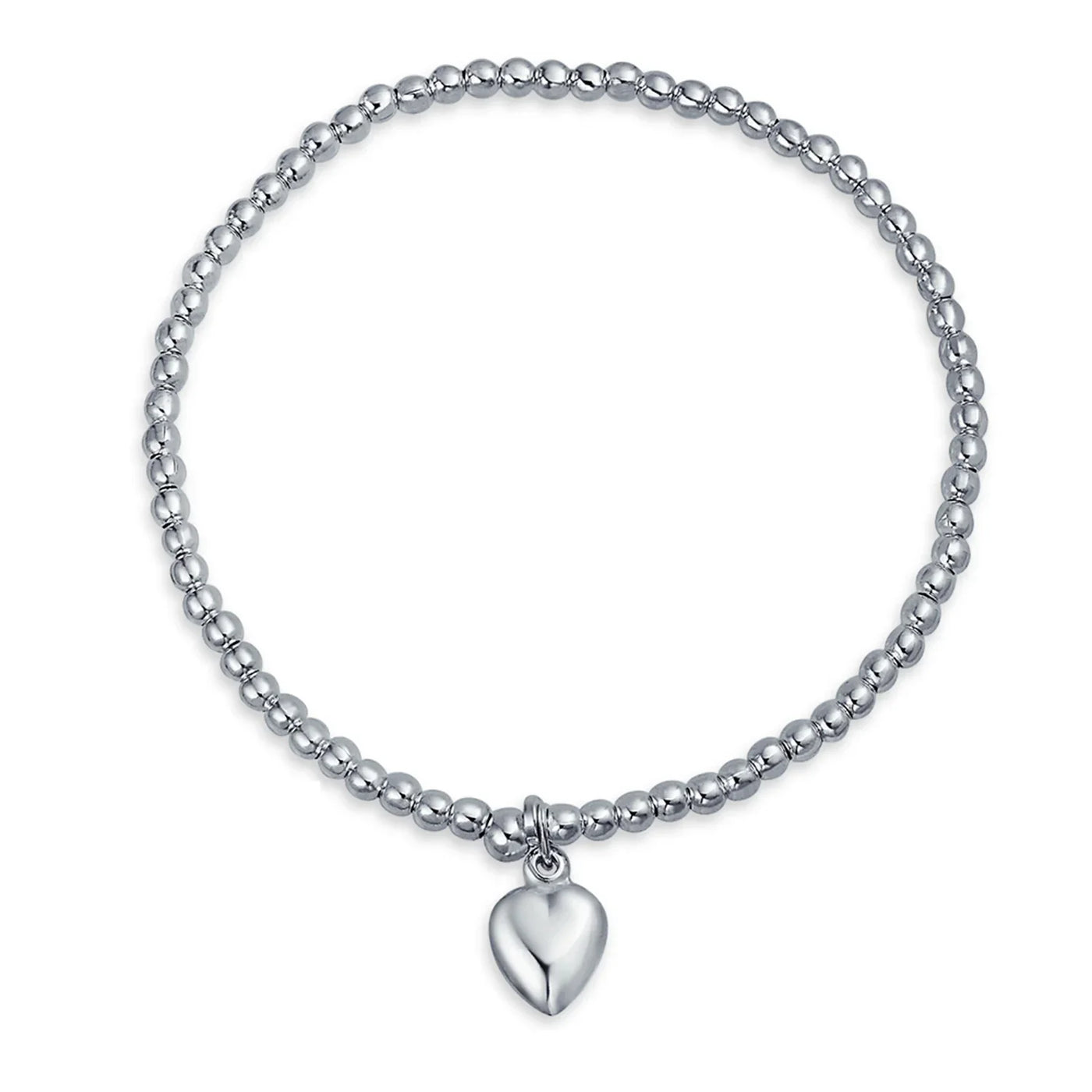 - Express your love with our sterling silver beaded stretch bracelet . Romantic and fun, it features a petite dangling heart charm. Made with 3mm sterling silver beads on a stretch cord, it fits up to a 7.75-inch wrist. Perfect for any occasion, this heartwarming bracelet is a timeless piece of heart-shaped jewelry.