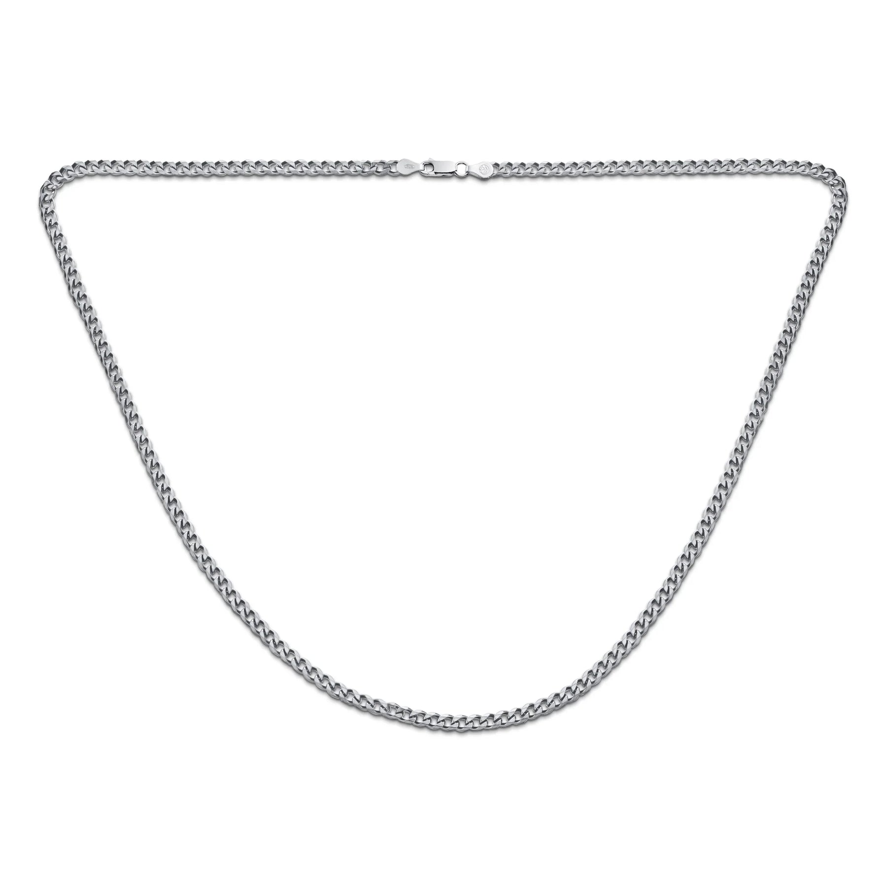 • A stunning choice, this Cuban Necklace is made of .925 Sterling Silver and features a lobster claw clasp for maximum security and function. This beautifully designed necklace is a must have piece featuring a lustrous, 66mm, 150 gauge, lustrous, Cuban link chain exuding contemporary appeal with substantial weight. A chic statement on its own, it is also compatible with medium and larger sized silver pendants.