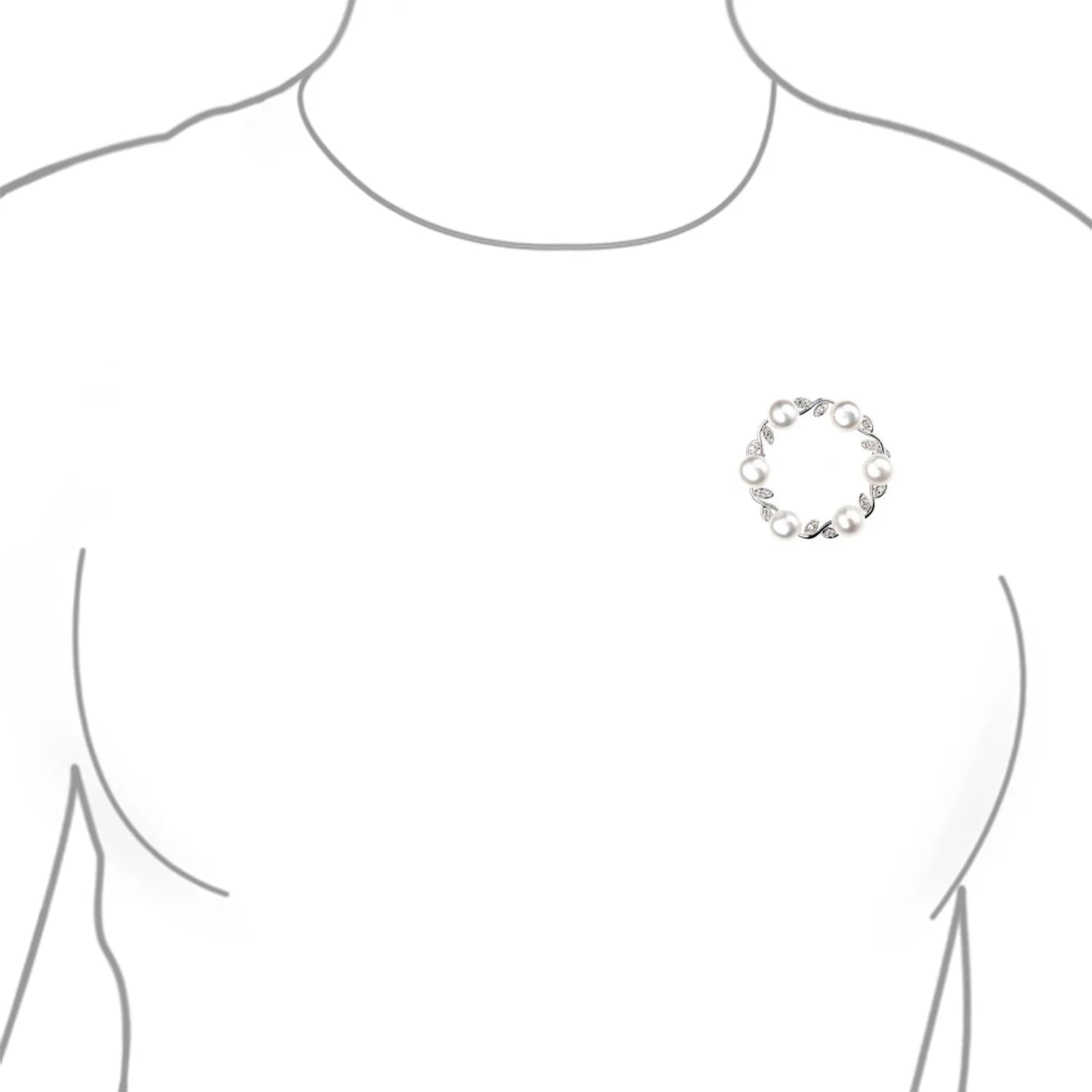 - From our living jewelry collection, this rhodium-plated brass flower pin offers a tarnish-resistant shine. The exquisite brooch features 7 round white Simulated Pearls. Sparkling marquise cubic zirconia stones form a flower pattern between the pearls. This silver-toned CZ Brooch Pin has a stunning look. Perfect for showcasing refined taste at spring bridal parties and weddings.