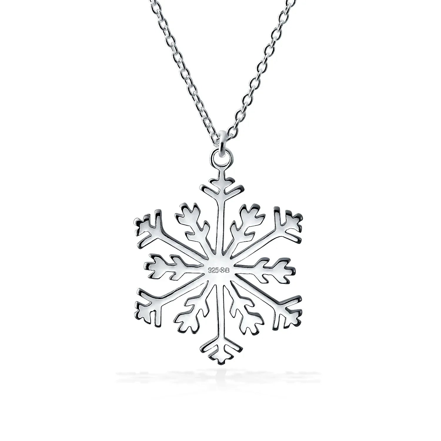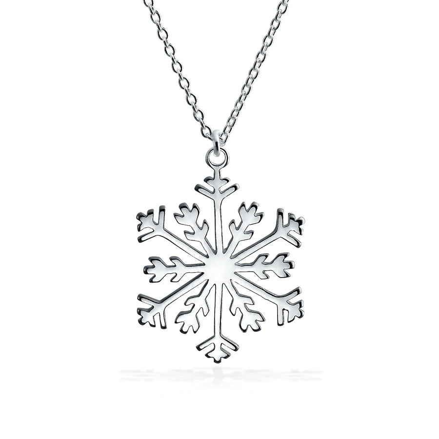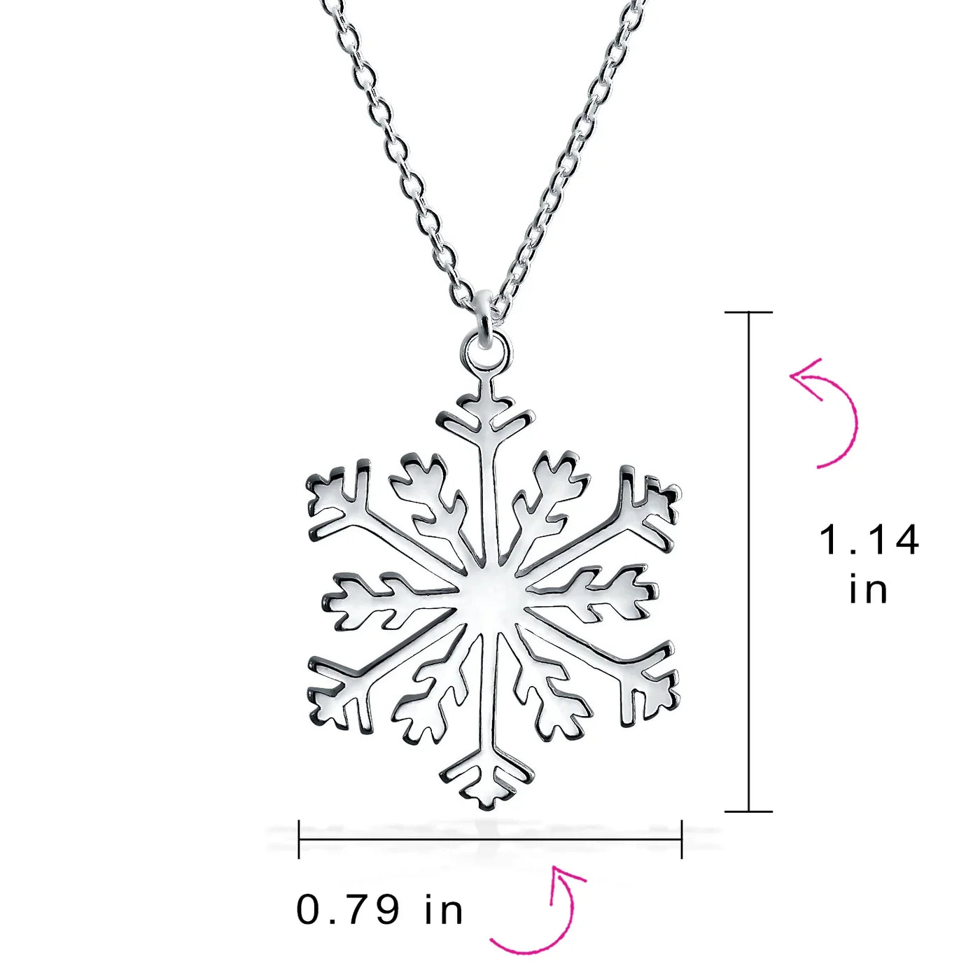 Classic Snowflake Pendant Necklace Polished Sterling Silver for Christmas Party