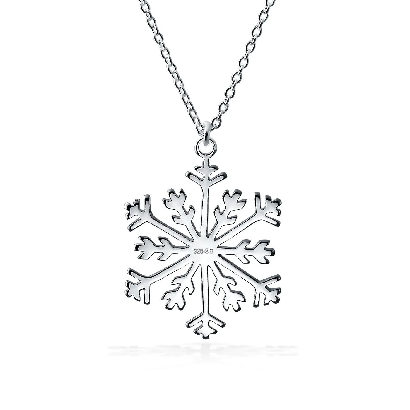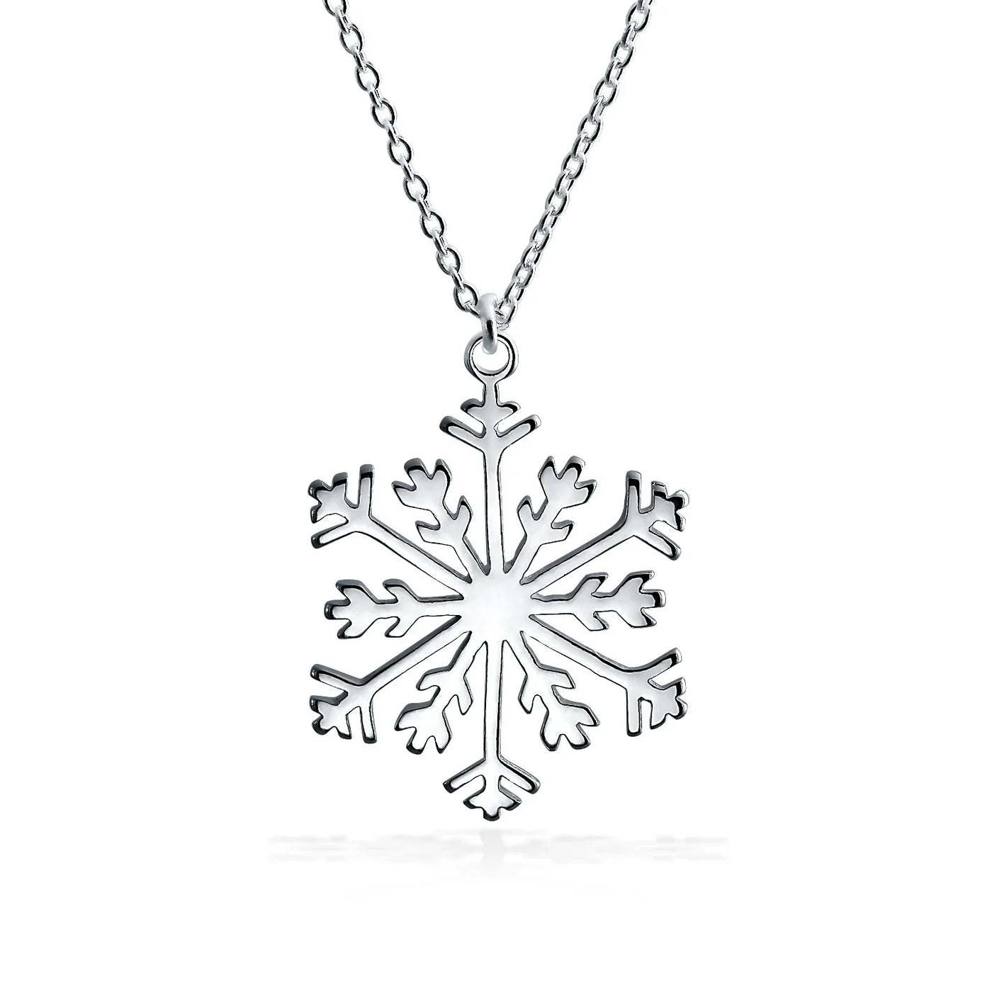 Classic Snowflake Pendant Necklace Polished Sterling Silver for Christmas Party - Bling Jewelry