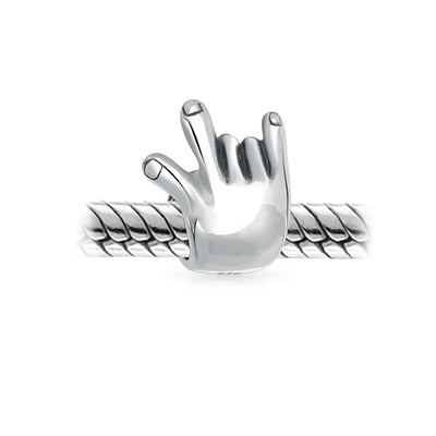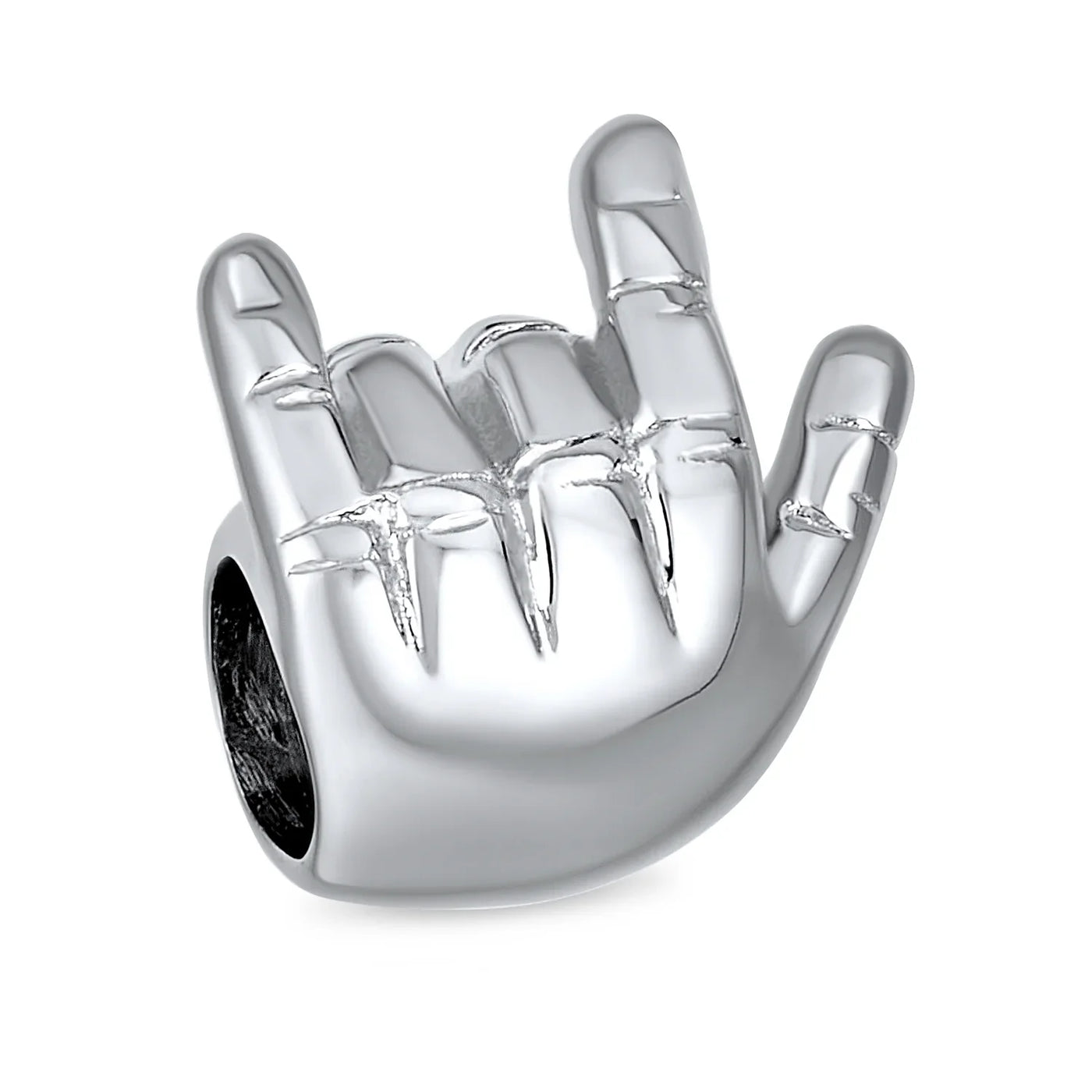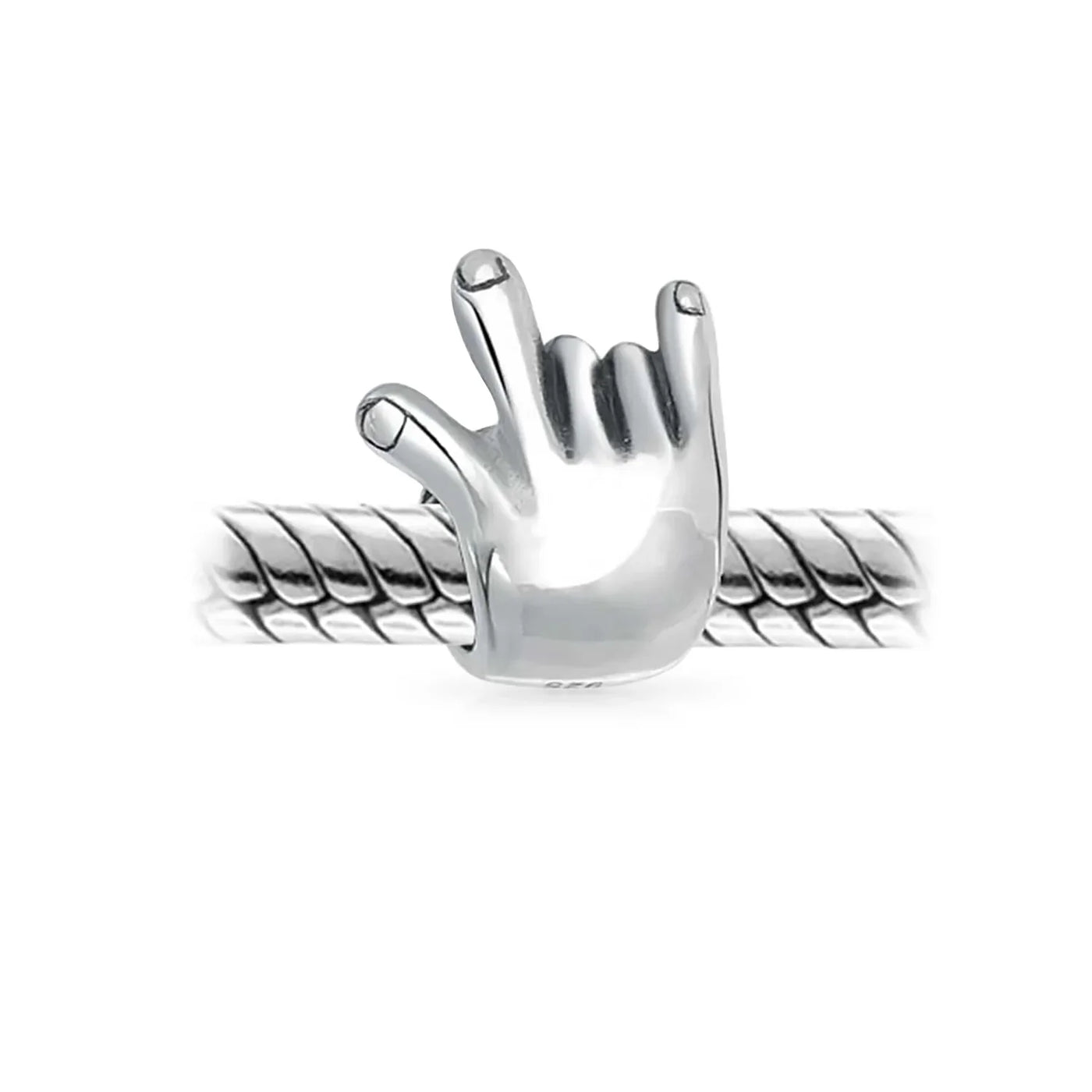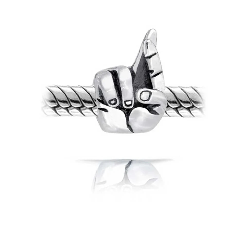 • Whether you speak ASL or just want to express your love, this sterling silver charm has a 5mm unthreaded core so you can carry this hand signal for love with you in your bead story.