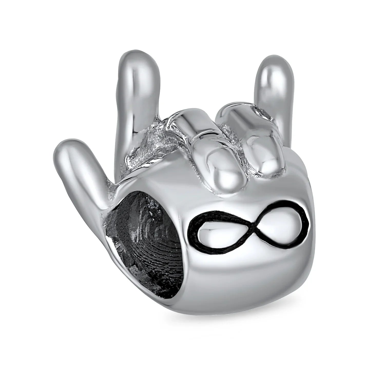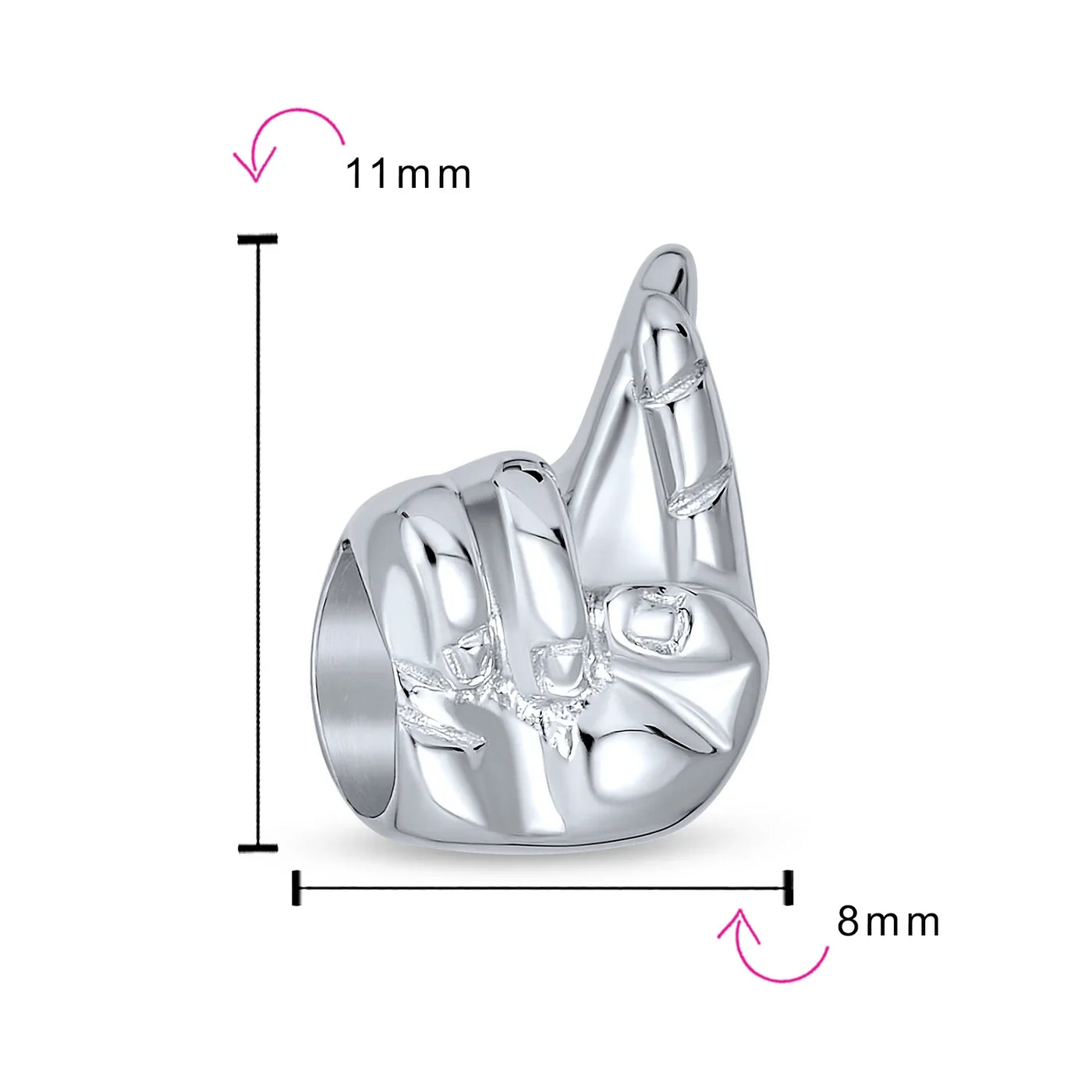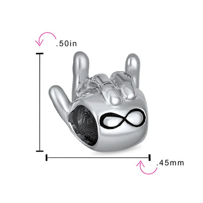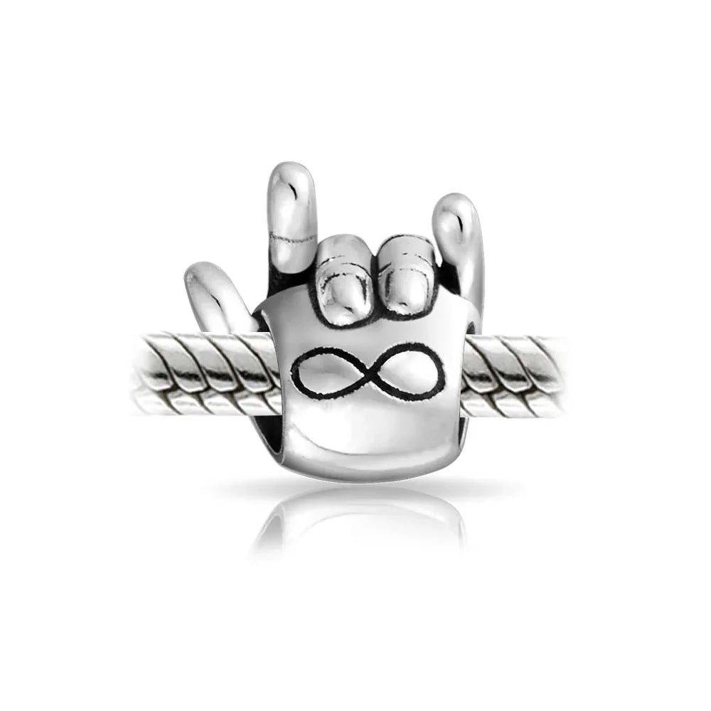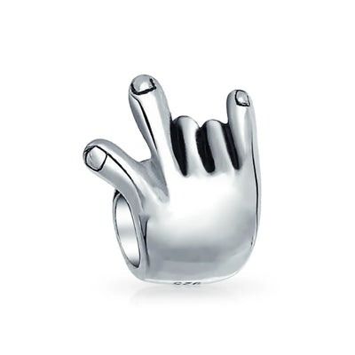 • Whether you speak ASL or just want to express your love, this sterling silver charm has a 5mm unthreaded core so you can carry this hand signal for love with you in your bead story.