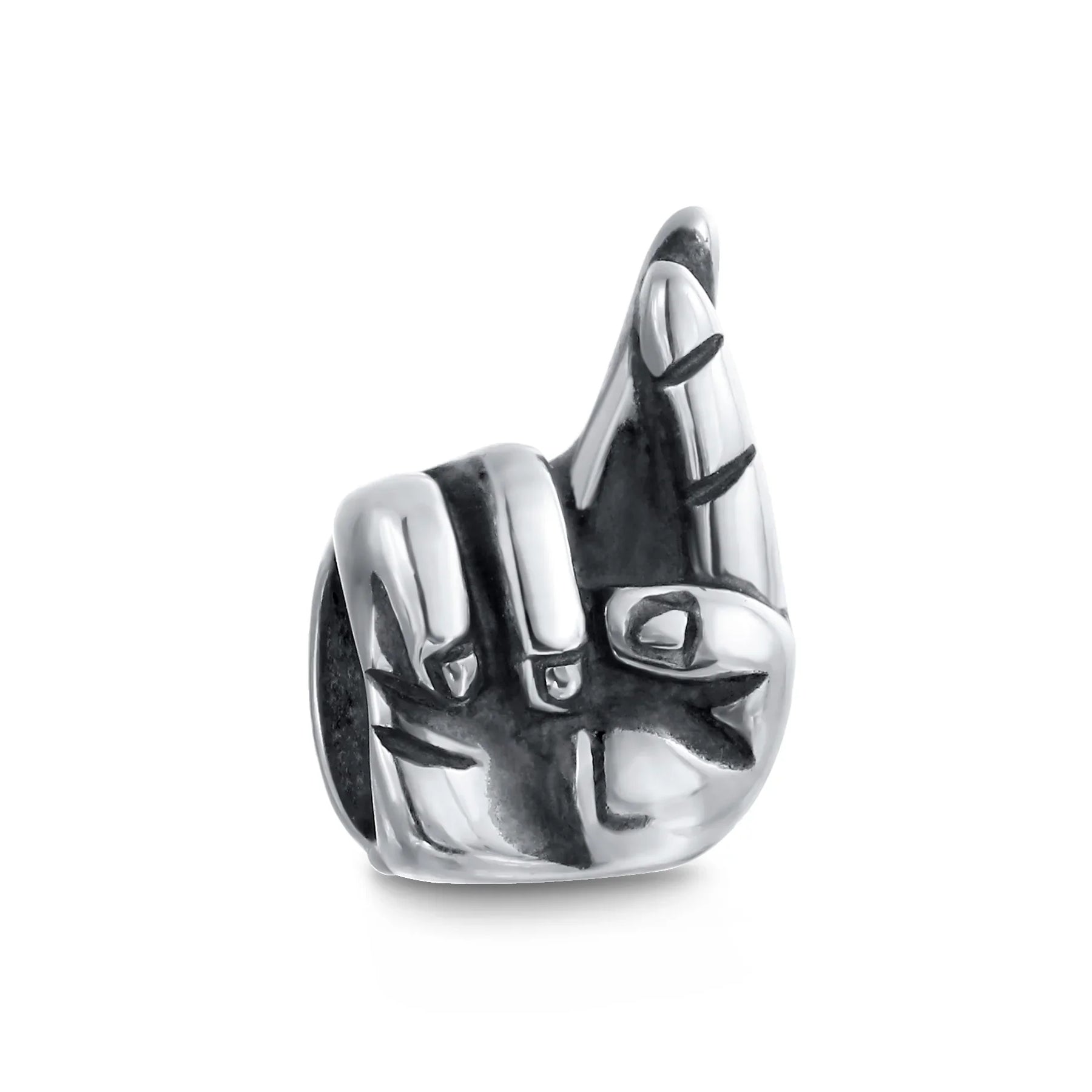 Initial Alphabet Bead Charm A-Z BFF Hand Sign I Love You Oxidized Silver Bead