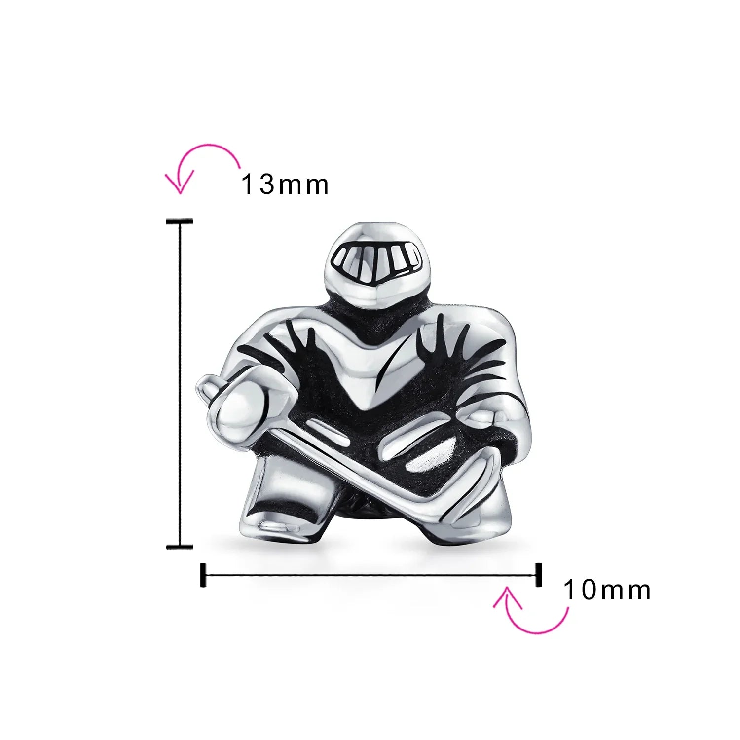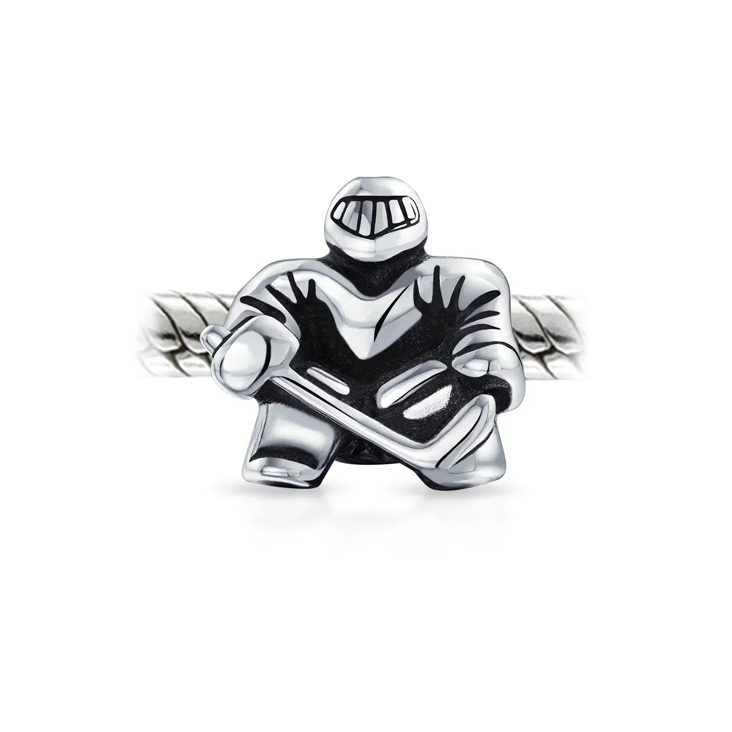 - A skilled goalie knows stopping shots is key to winning, and this .925 Sterling Silver hockey bead proves it. This detailed sports charm fits perfectly on any bracelet, showcasing a ready-to-defend goalkeeper. Ideal for ice hockey enthusiasts, this bead will be your favorite charm.