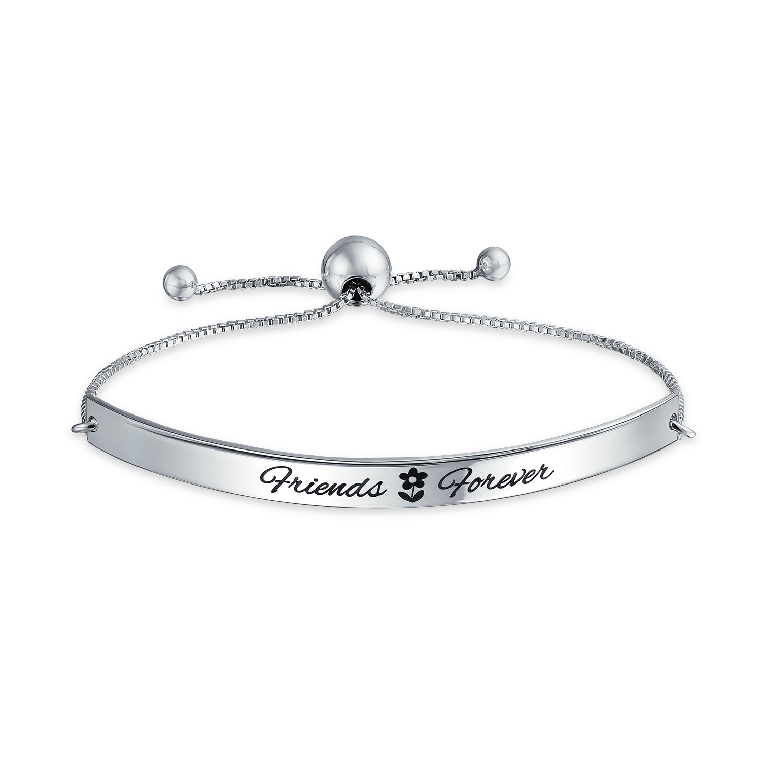 - Celebrate your friendship with this radiant .925 silver bolo bracelet . Elegant bar design with "Friends Forever" inscribed. Inspirational and timeless.