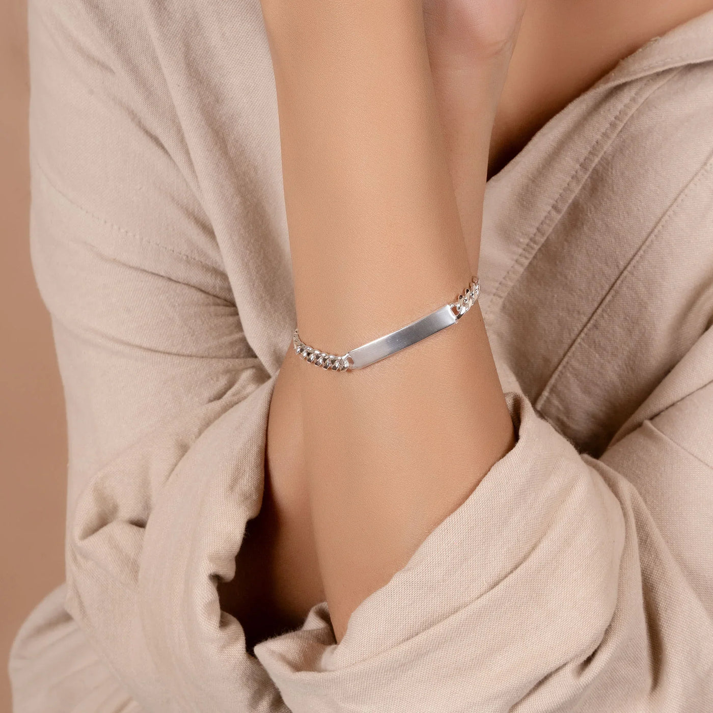 - Our Curb link ID bracelet with flat diamond-cut links for a reflective shine. Strong and durable, without compromising its sleek appearance. this chain ensures a comfortable fit for daily wear