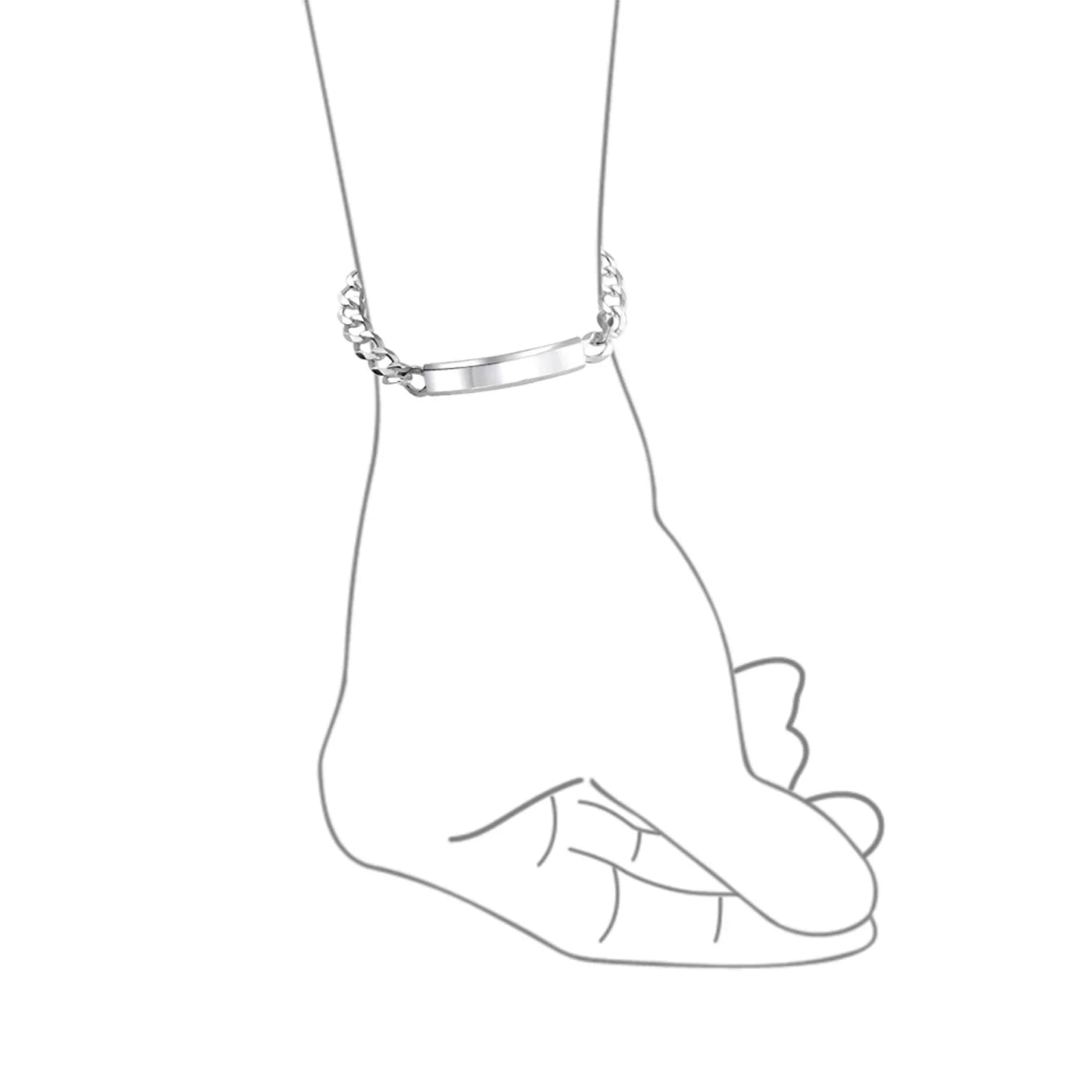 - Elevate your style with this stunning unisex identification bracelet that exudes class. Crafted with a sleek curb link chain, this bracelet showcases a rectangular name id tag at its focal point, adding a touch of sophistication. Boasts impeccable craftsmanship and a lustrous finish that will surely catch everyones attention.