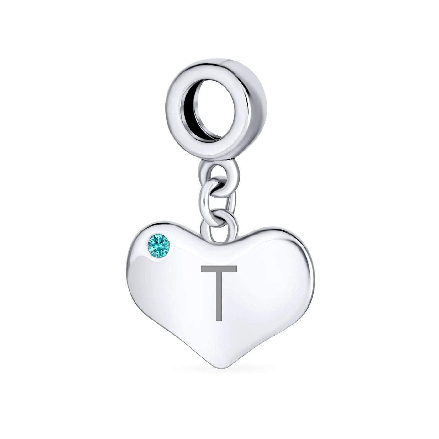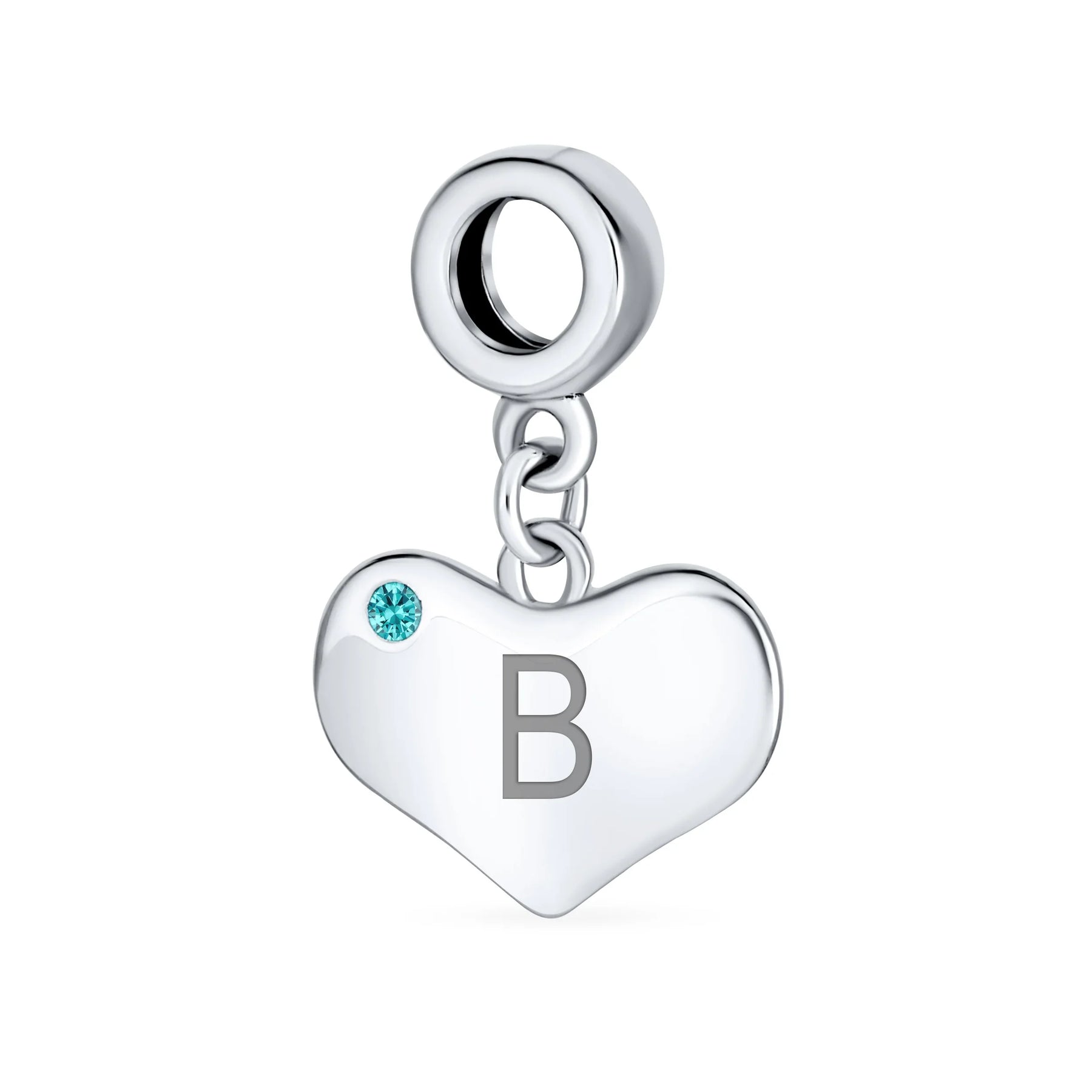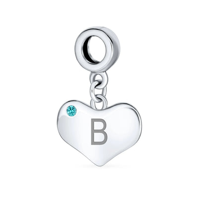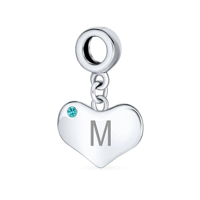 - Move your heart to your beads bracelet with this sterling silver dangle heart charm. Perfect for March birthdays, featuring a simulated Aquamarine crystal. Show your love with this stunning birthstone charm.