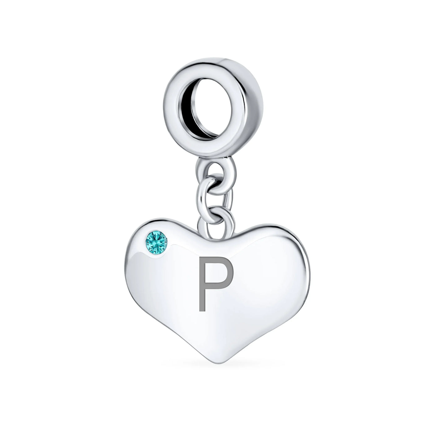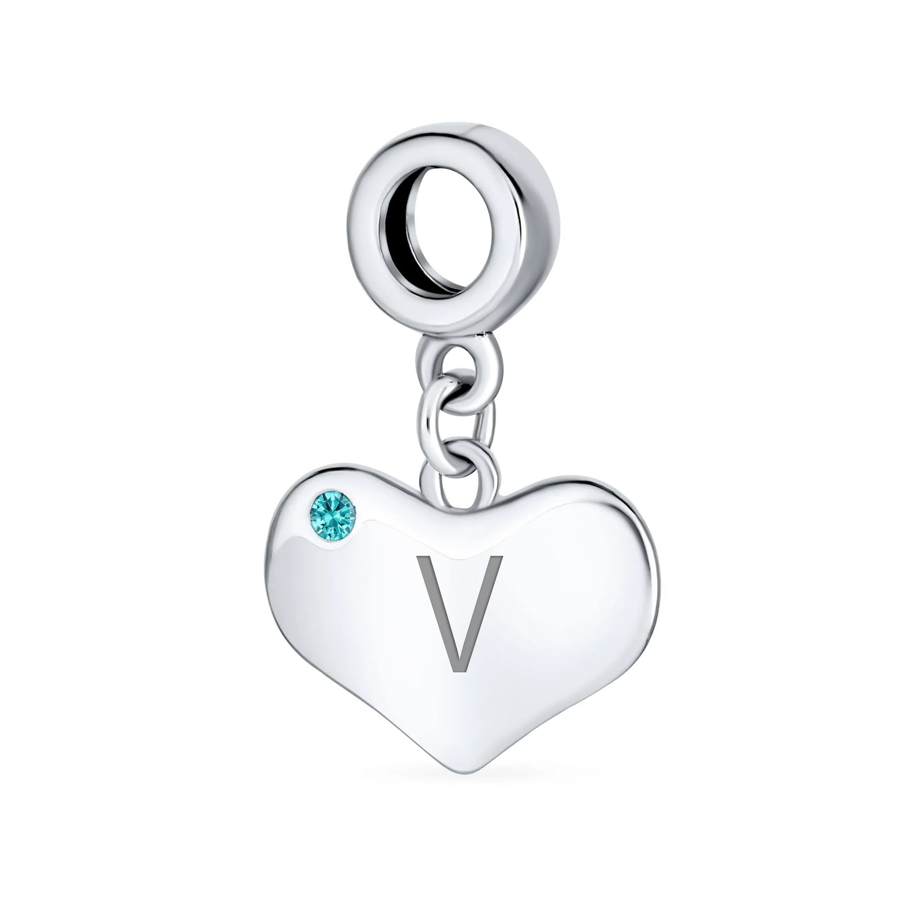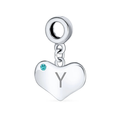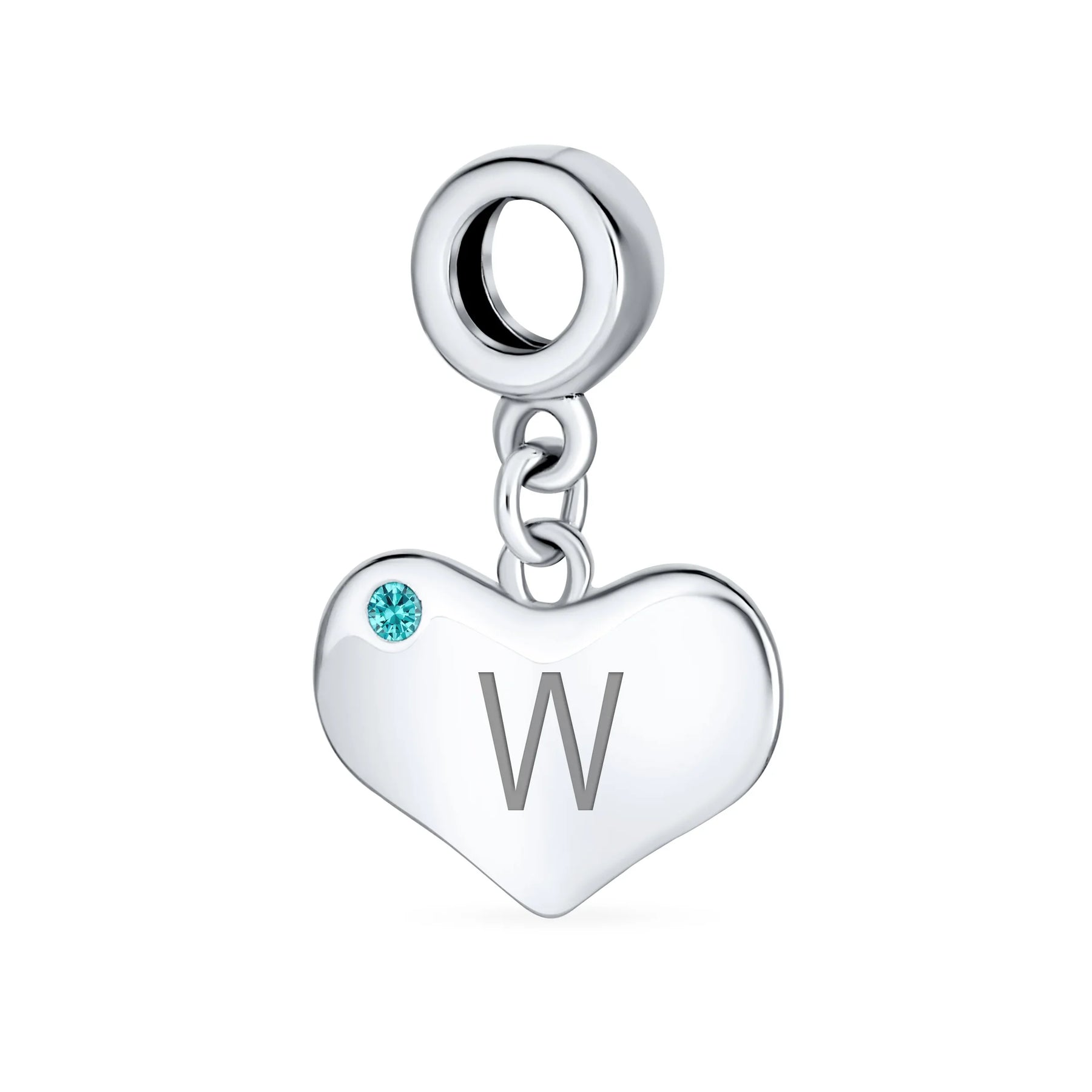 - Move your heart to your beads bracelet with this sterling silver dangle heart charm. Perfect for March birthdays, featuring a simulated Aquamarine crystal. Show your love with this stunning birthstone charm.