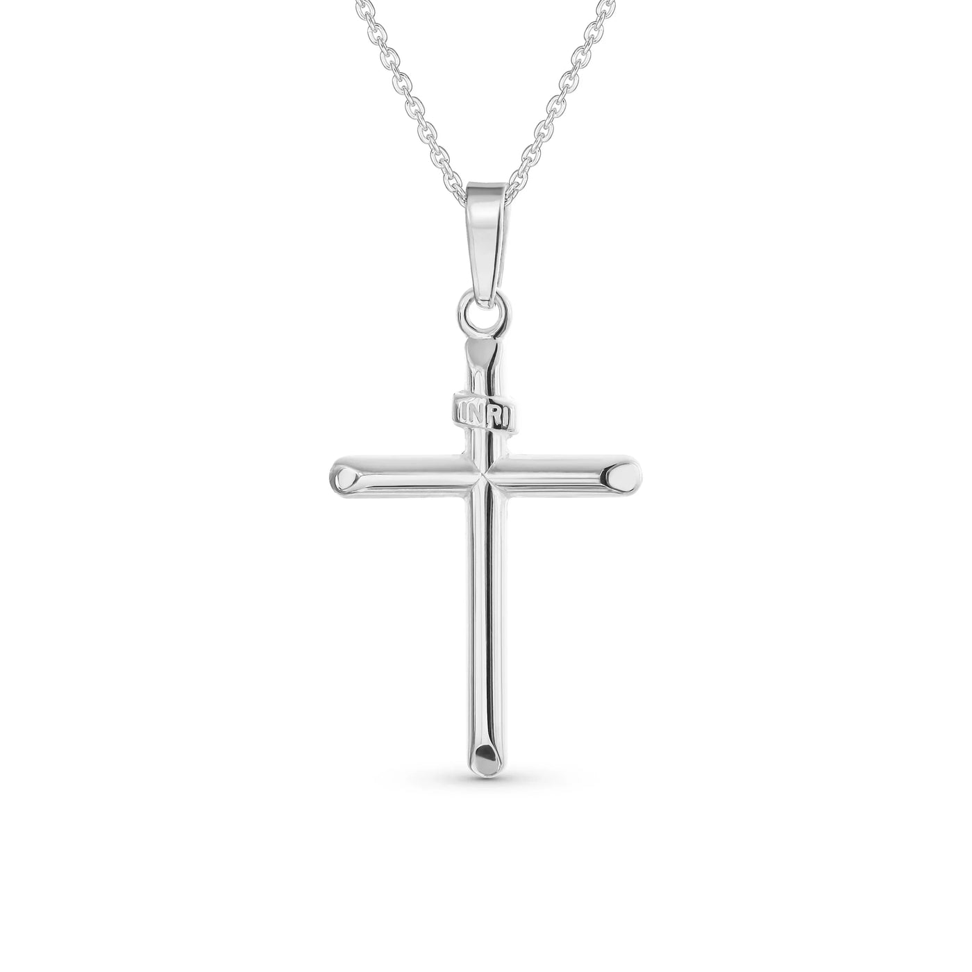 Unisex Sterling Silver INRI Jesus Crucifix Pendant Necklace with 18 Inch Chain
