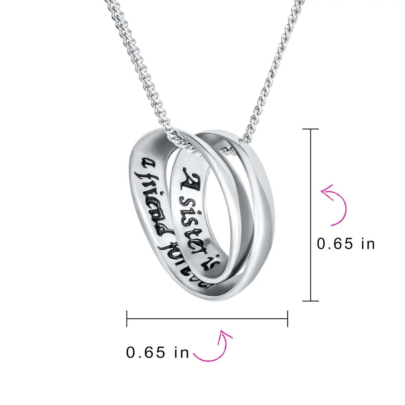 - Celebrate the unbreakable bond between sisters with our .925 Sterling Silver circle heart pendant necklace. This sentimental piece is a perfect gift. Crafted from high-quality .925 Sterling Silver, it’s both beautiful and meaningful. The 18-inch necklace features a spring ring closure for secure wear. The asymmetrical heart pendant says "I love you," making it an ideal Valentine's Day gift. Weighing just 3.3 grams, it’s comfortable for everyday wear. Show your sisterly love with this thoughtful and elegant piece. Order now to make her day special.