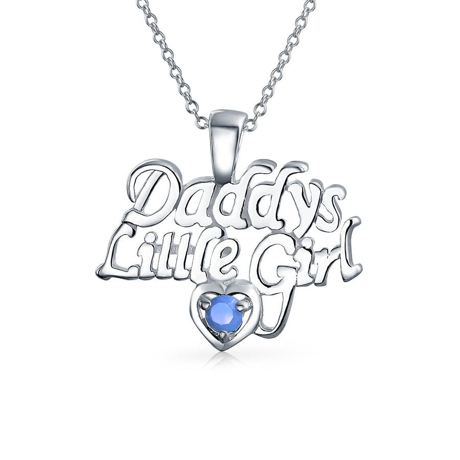 - Celebrate the father-daughter bond with this stunning sterling Silver pendant necklace. Features 'Daddy's Little' message, open heart design, and blue opal stone. Perfect for showing love and appreciation.