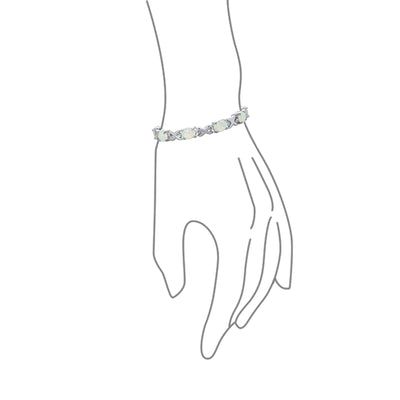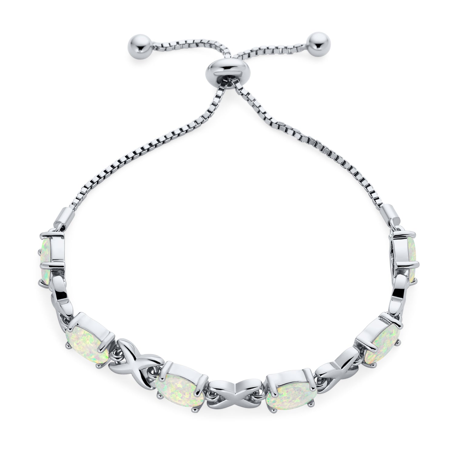 - BOLO STYLE FOR SMALL WRISTS - Alternating infinity symbol with 6 opal stones creates a fine, elegant, and timeless bracelet. Perfect for 6-7 inch sizes. Add elegance and romance to your wedding day with this opal bolo bracelet. Tarnish-free, crafted in Rhodium .925 sterling silver, and secured with a pull string design.