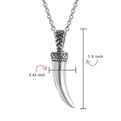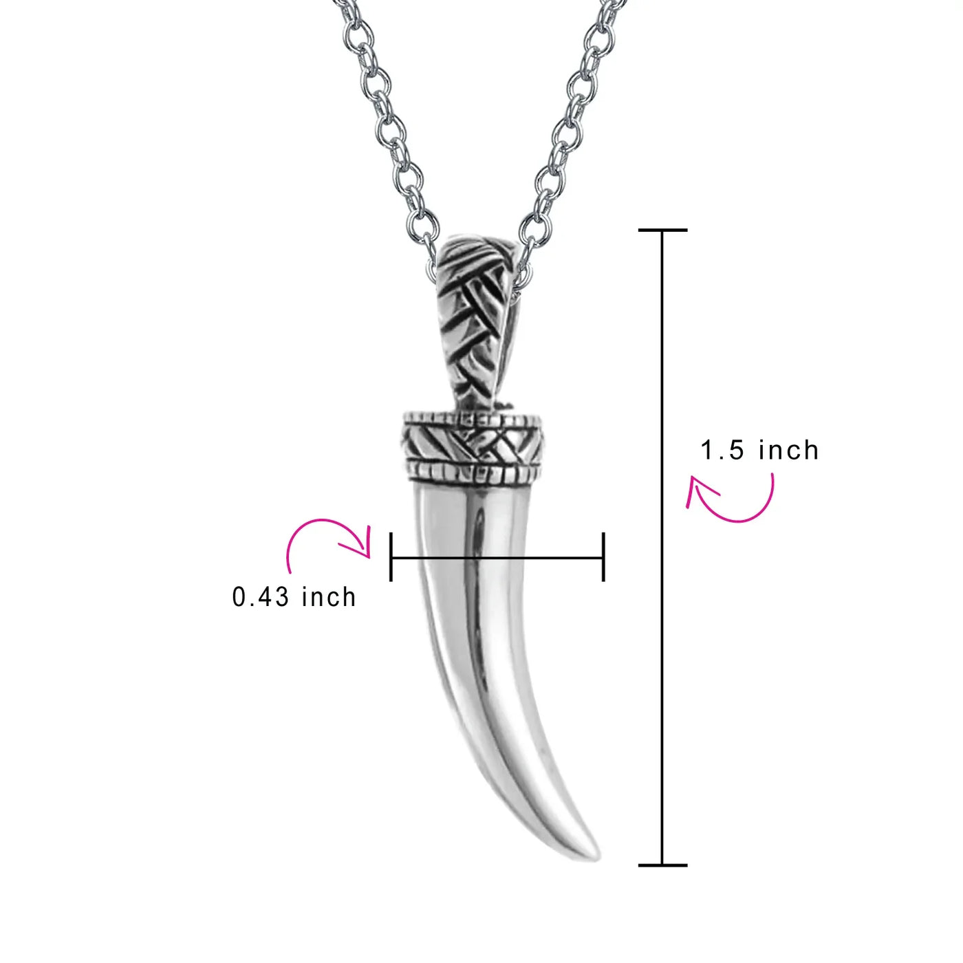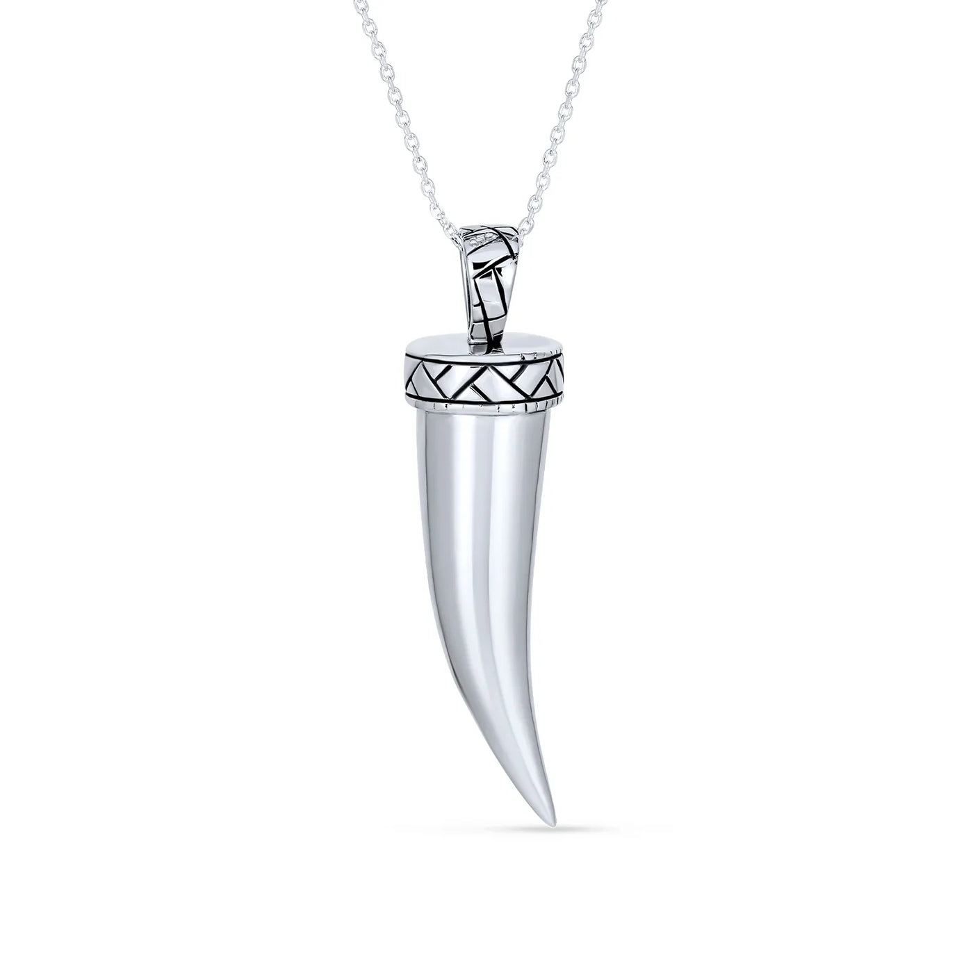 - Horn jewelry pieces are timeless good luck charms, always in style for believers. Crafted from polished .925 Sterling Silver, our elegant horn pendant matches any outfit. The braided design on the top and bail adds dynamic beauty. Stand out day or night with this striking silver horn charm. Perfect for any celebration, add it to your jewelry collection or gift it today. rolo chain included.
