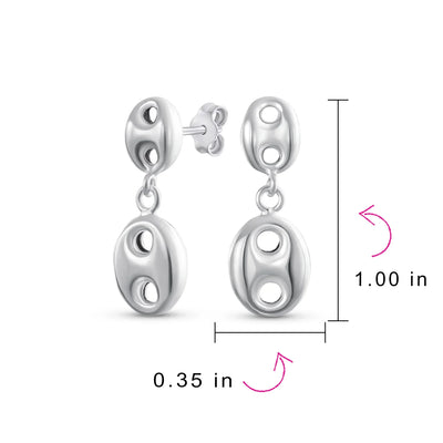 - Measure: 9mm width, 16 Inch Length Chain, Secure Lobster Claw Clasp Earrings, 1 Inch Length, Weight: 23.6 Grams Material: Genuine .925 Sterling Silver, HYPOALLERGENIC - Lead-Free Nickle-free. Each piece is stamped