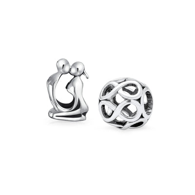 - Celebrate your romance with these sterling silver kissing couples and infinity heart charm bead. Ideal for Valentine's Day, these love beads easily combines with other charms on any bracelet to express extra love.