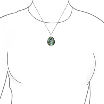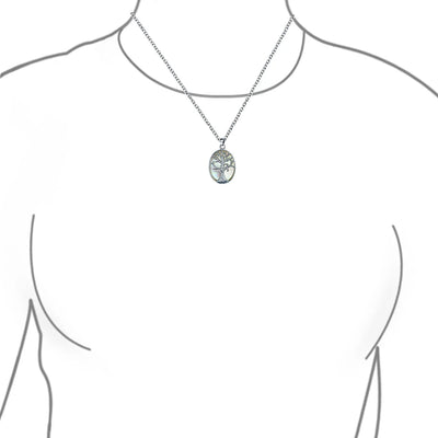 - Experience the harmony of heaven and earth with this enchanting Tree of Life necklace. Inspired by Celtic traditions, this sterling silver pendant features a mother of pearl backing, measures 1.2 inches, and is elegantly suspended from an 18-inch chain, making it a perfect gift.