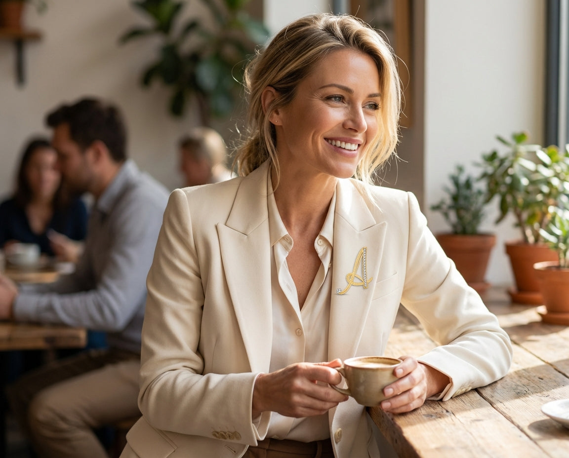 - Enhance your favorite garments, and fashion accessories with this Personalized initial brooch pin on jacket blouses, sweaters, scarves, hats, bag, knapsack and more.