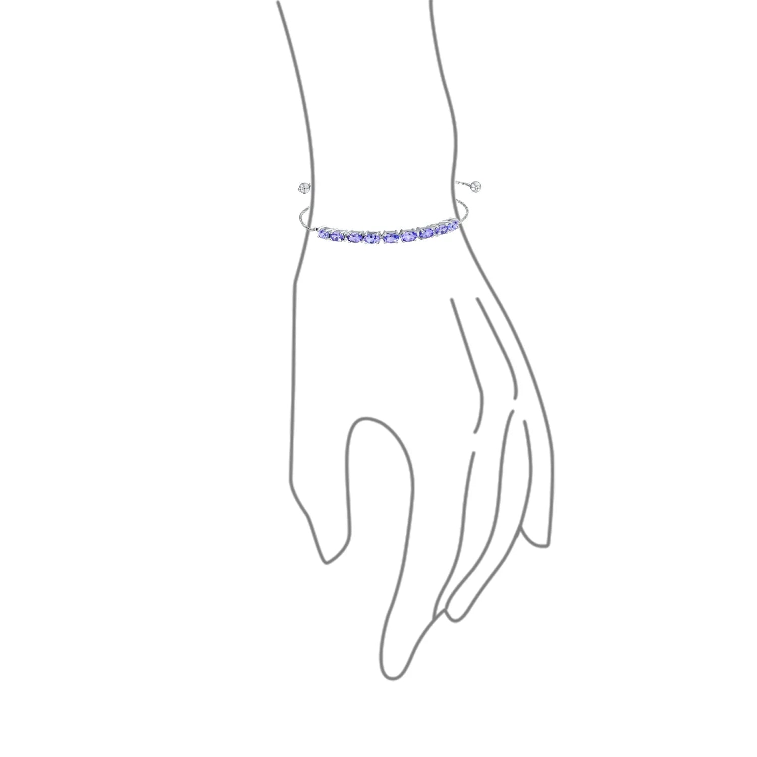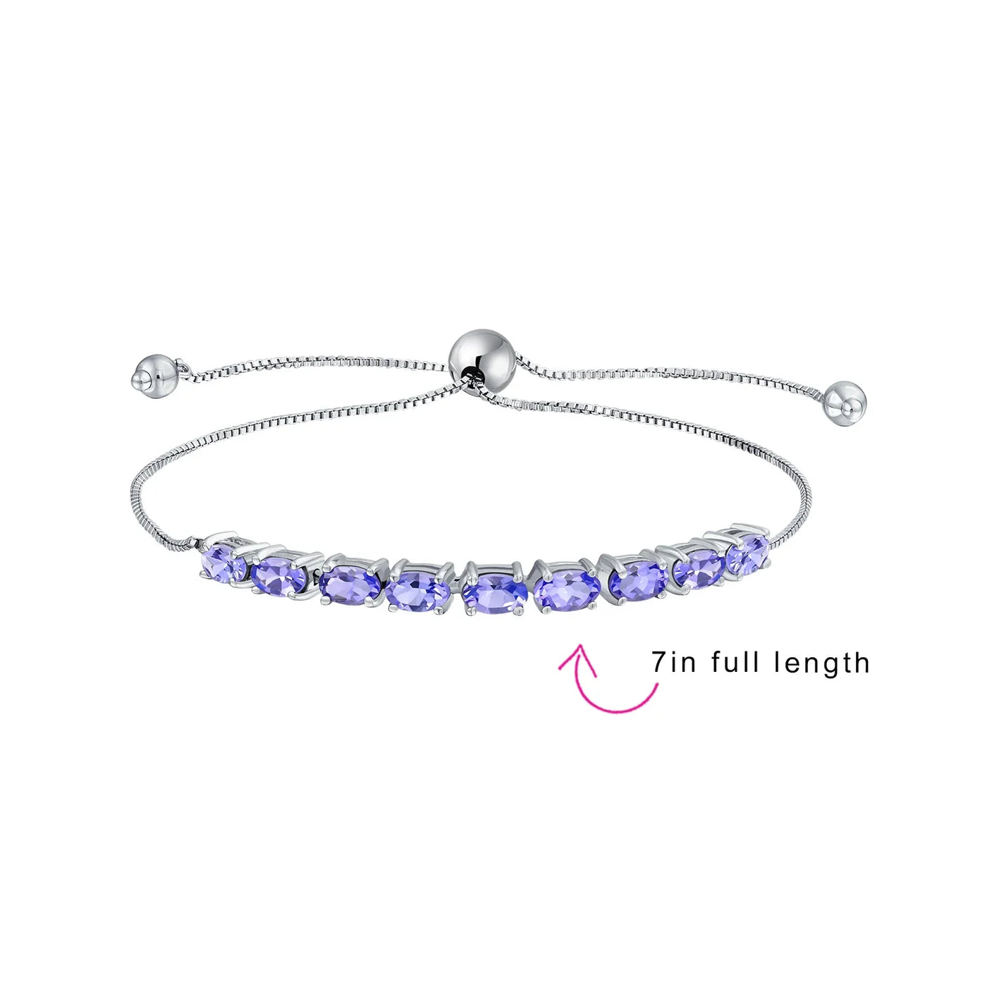 - Add a vibrant touch to your look with our stunning Tanzanite adjustable Bolo bracelet . Crafted in sleek 925 sterling silver, it features prong-set oval-shaped violet-blue tanzanite stones. The 7-inch bracelet has a pull-string closure for a perfect fit. Made with tarnish-free materials, it combines modern and classic styles. Suitable for any occasion, day or evening wear. A must-have accessory for women, teens, and December birthdays. Elevate your style with this elegant and versatile bracelet today.