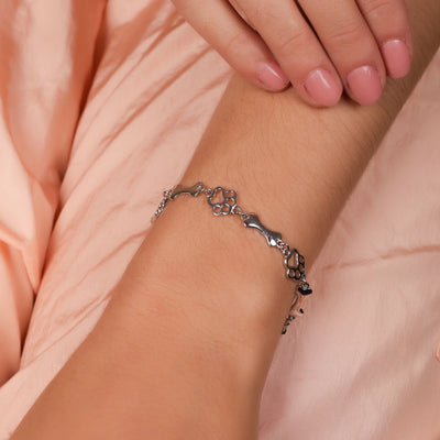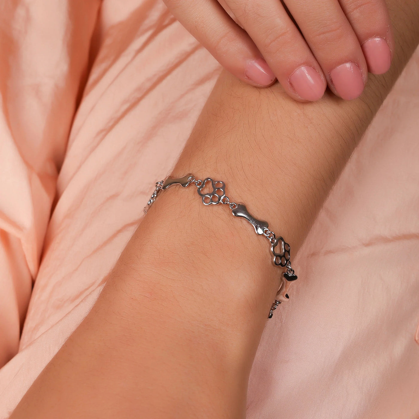 - Show your dog love with our adorable .925 sterling silver bracelet! Features bones and paw prints for a cute look. Weighs under 6 grams, perfect for all-day wear. The 7-inch bracelet has a secure lobster clasp, ideal for playtime. Treat yourself or gift it to a dog lover to celebrate the human-canine bond.
