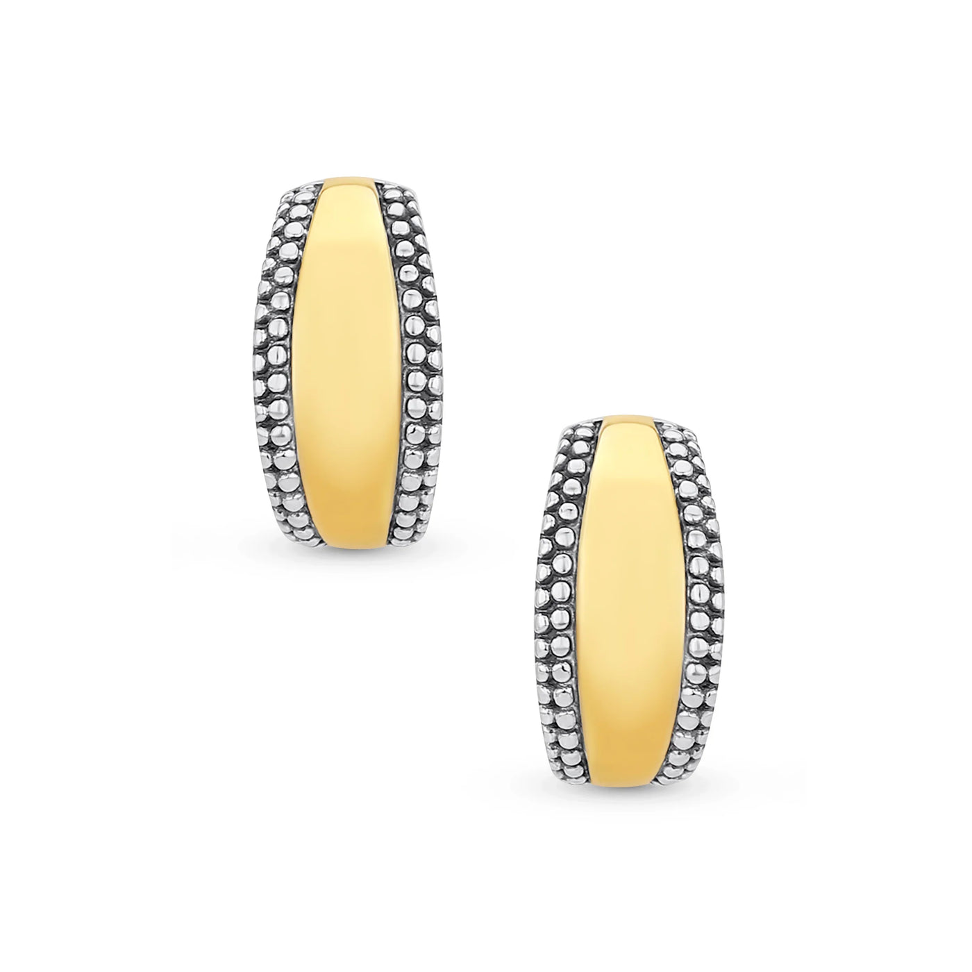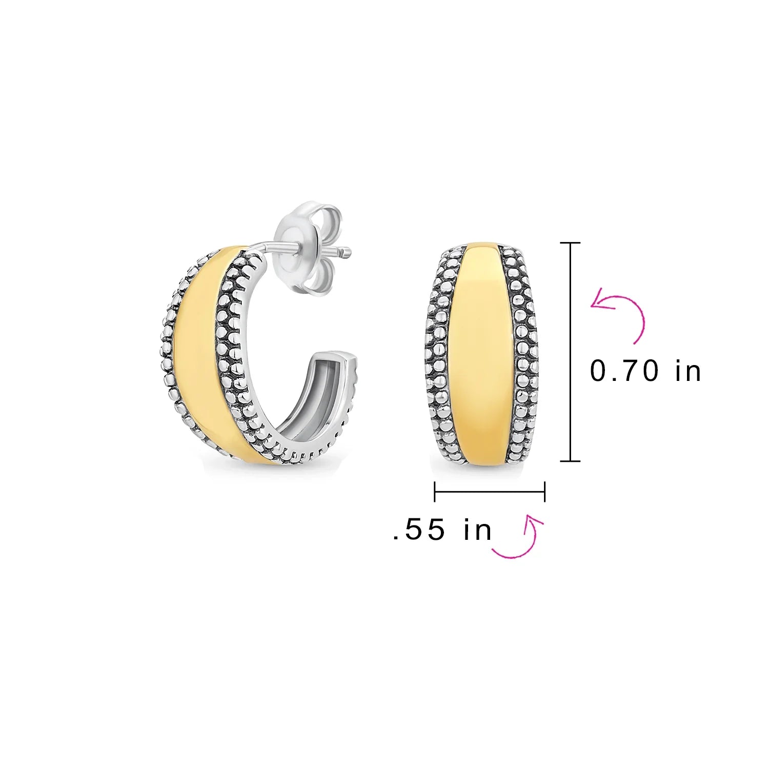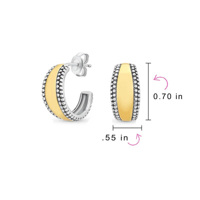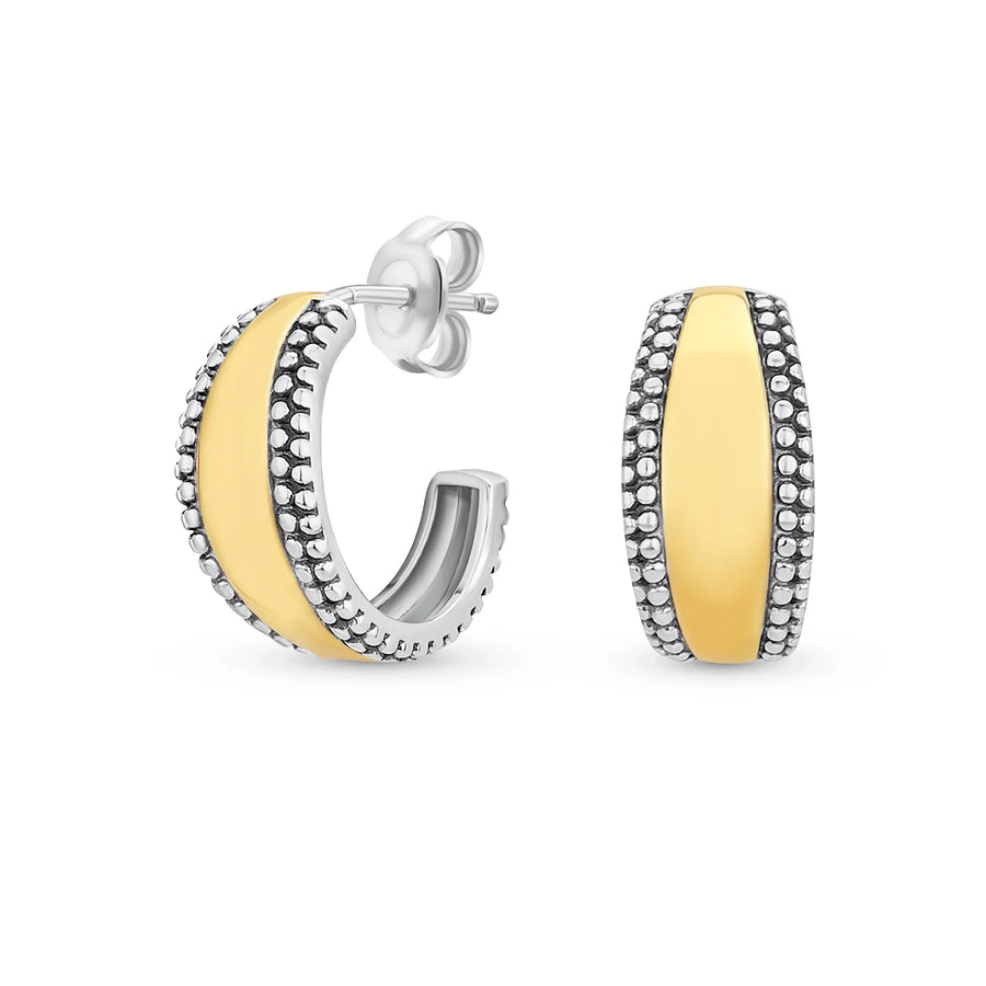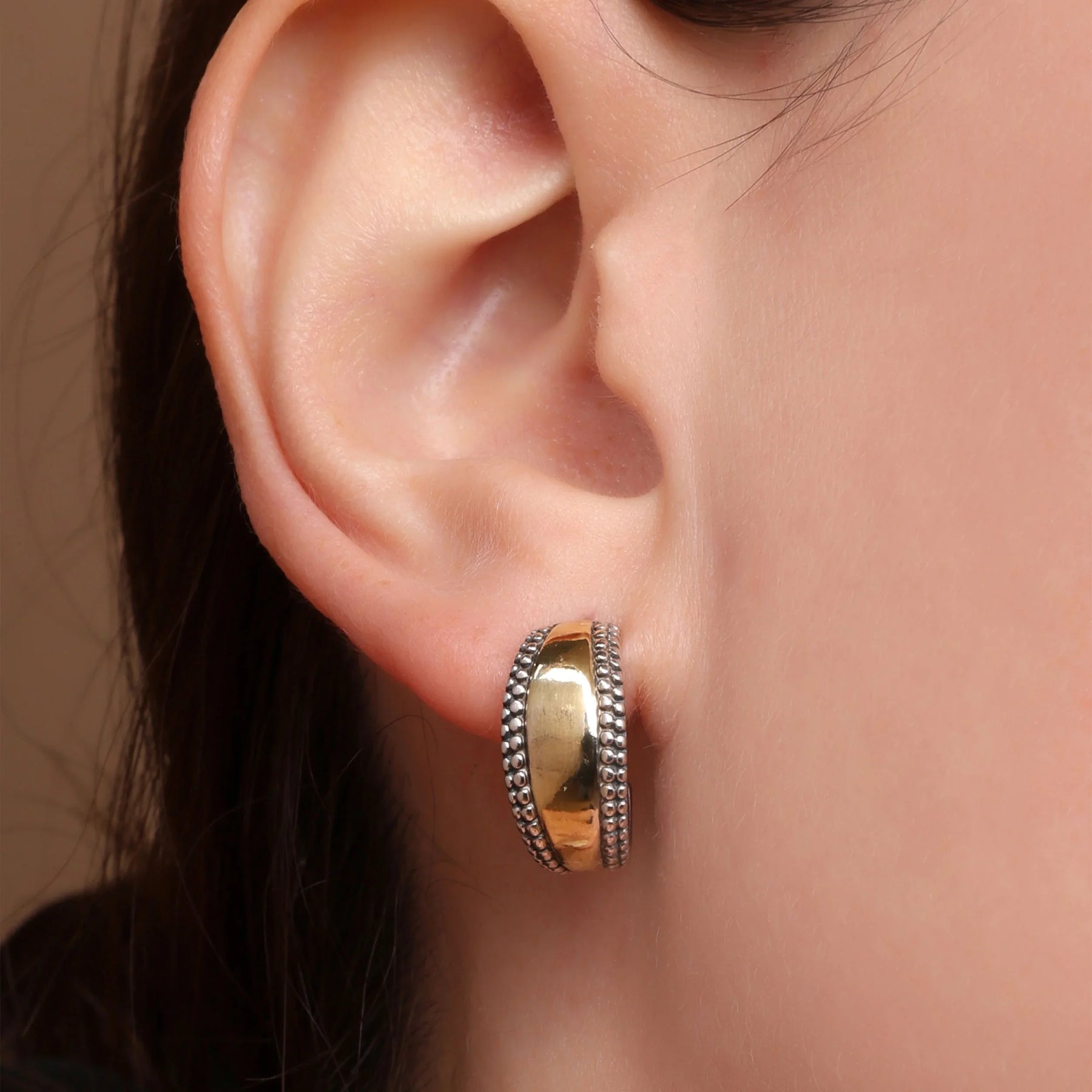 - Discover our timeless, elegant 2-tone hoop earrings. These lightweight half hoops rest comfortably on your ear. Inspired by Bali's beauty, they pair effortlessly with any outfit. Crafted from high-quality sterling silver, they're a must-have for your jewelry collection. Perfect for coffee mornings or happy hour, these casual earrings elevate your style.