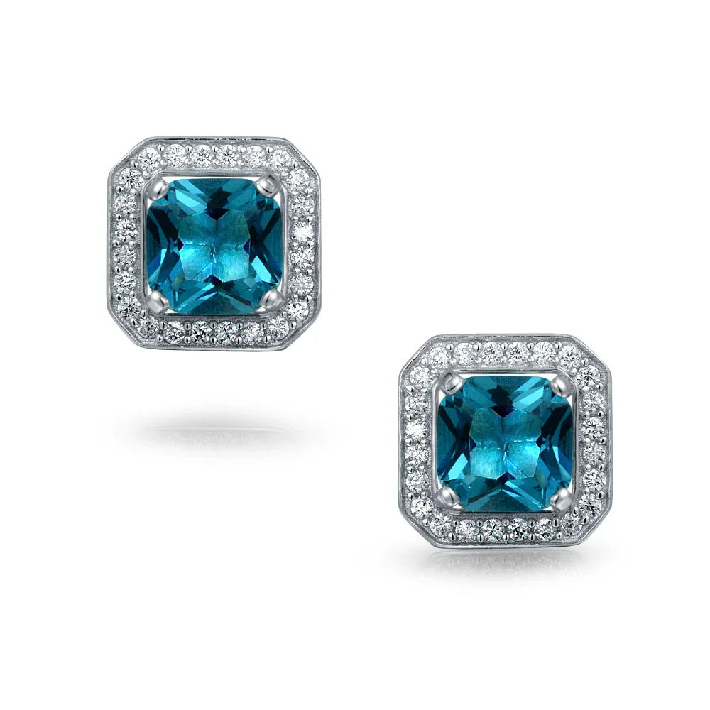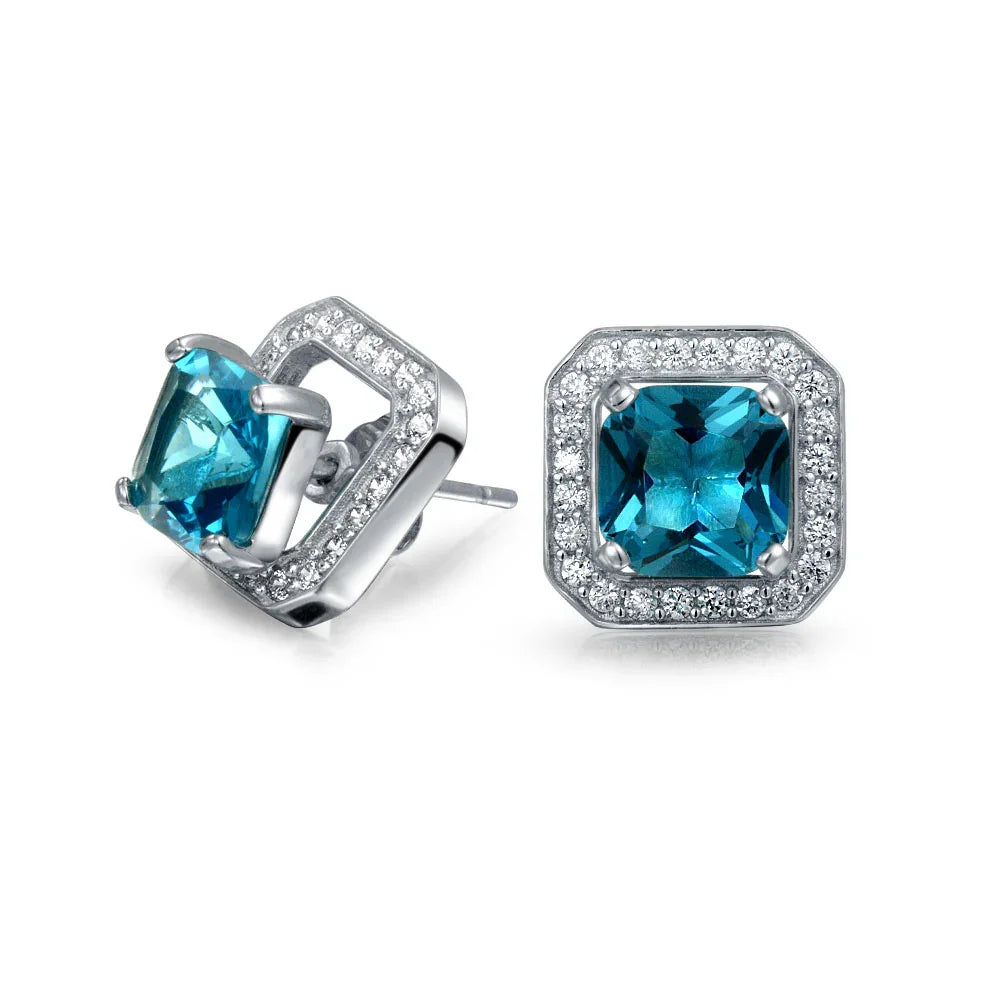 - TWO GORGEOUS STYLES IN ONE - Showcasing a captivating square radiant-cut simulated blue topaz CZ solitaire, complemented by a detachable square-shaped clear CZ earring jacket, embellished with a halo of sparkling CZs. Perfect for a March birthday gift.