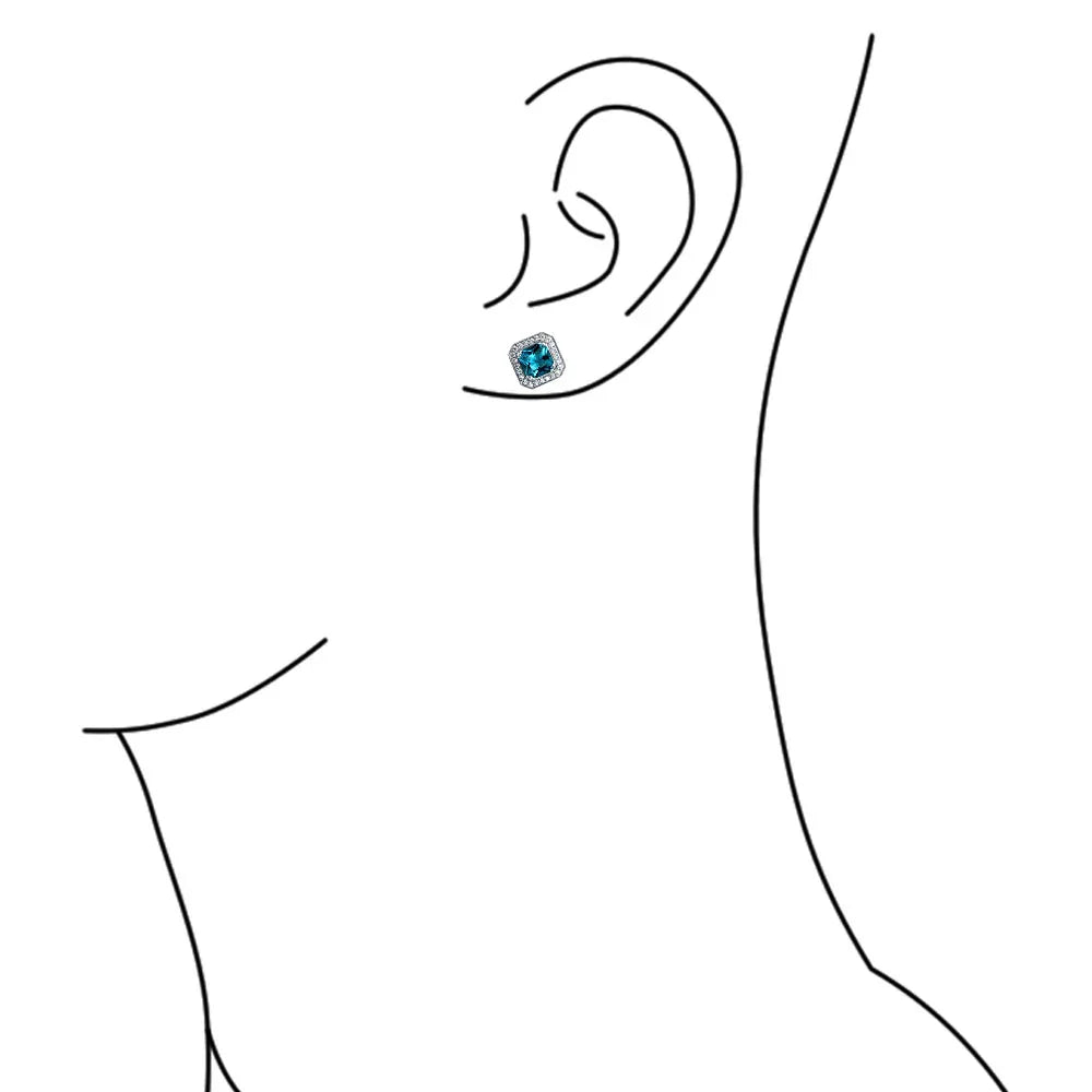 - Enhance your look with dazzling .925 Sterling Silver and CZ ear jacket earrings. Featuring radiant cut simulated blue topaz studs. Wear solo for color or with the halo jacket for full glam.