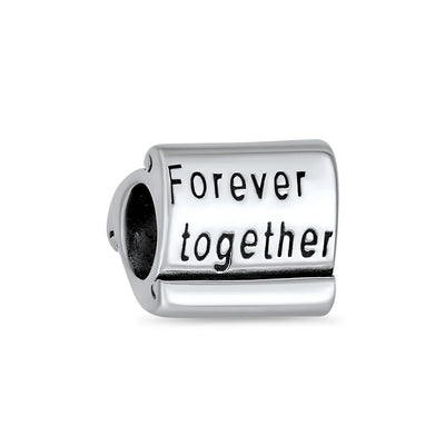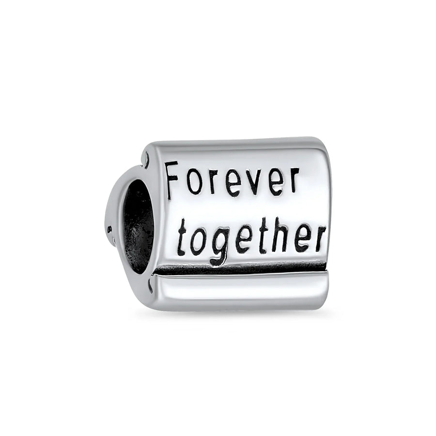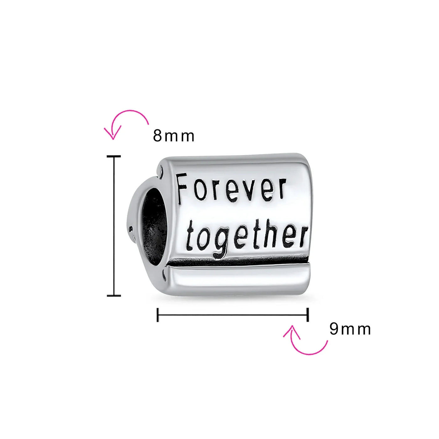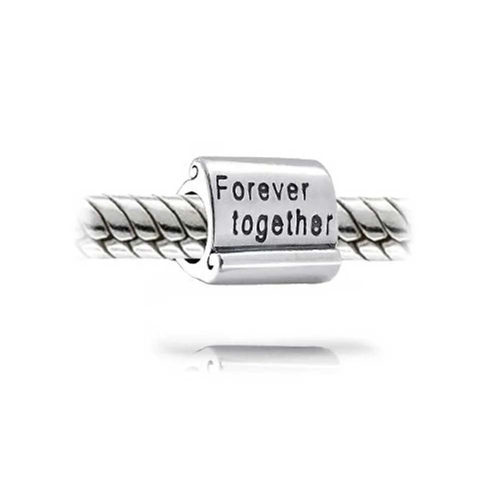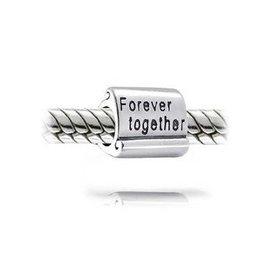 • BEAUTIFUL SENTIMENT AND DESIGN - Its always better when we are together, so why not make that a forever commitment. This beautifully designed bead charm features a scroll motif, inscribed with the message, Forever together, crafted of 925 sterling silver.