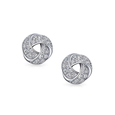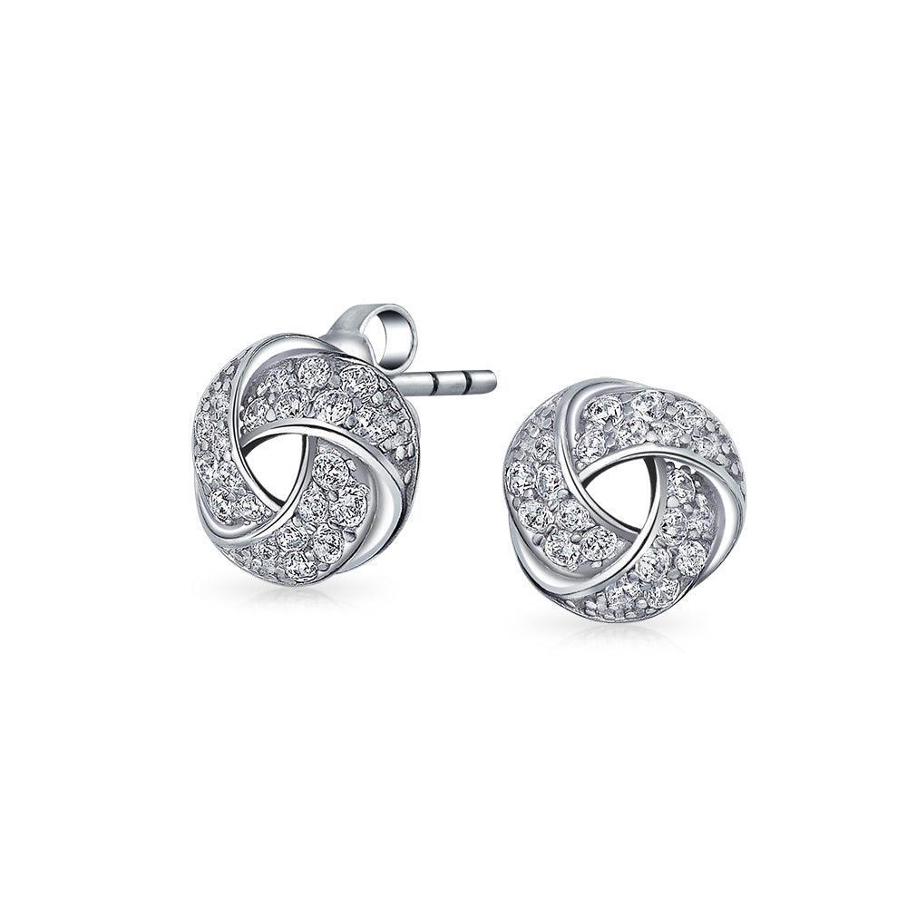 - Discover our stunning Silver CZ Love Knot stud earrings. Crafted from high-polished .925 sterling silver, they sparkle with clear cubic zirconia stones. Perfect for bridal parties or any special occasion. These affordable earrings make a great Valentine's Day or holiday gift. Feel elegant with these modern, beautiful accessories.