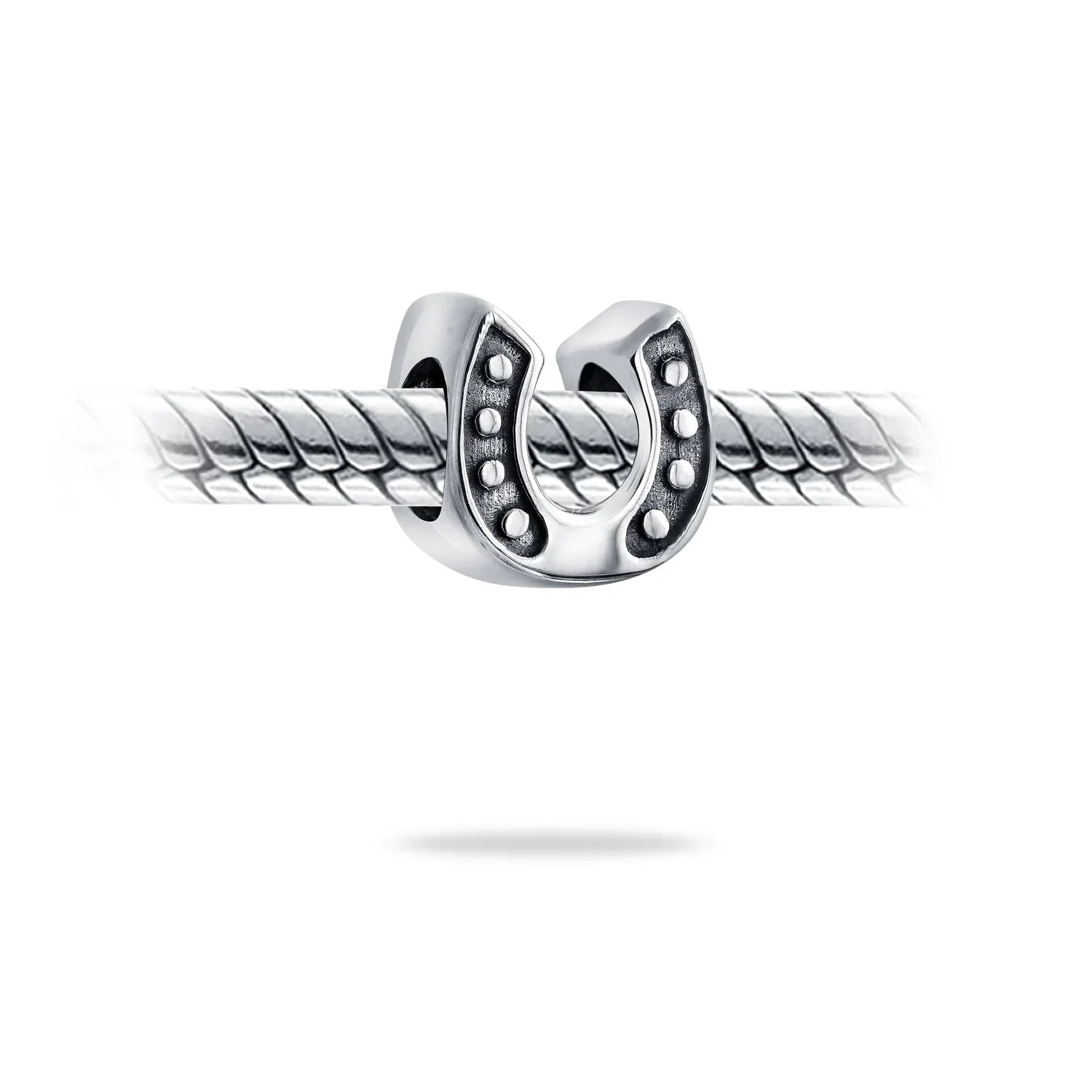 Set of 2 Lucky Horseshoe Charm Bead Sterling Silver for European Bracelet - Bling Jewelry