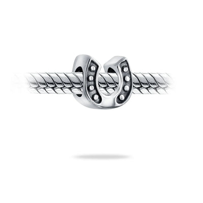 • Symbol of luck and a tribute to horse lovers, this sports bead is a perfect gift for equestrians. Each handmade, unique 925 Sterling Silver Horseshoe Charm features slight variations in pattern and color.